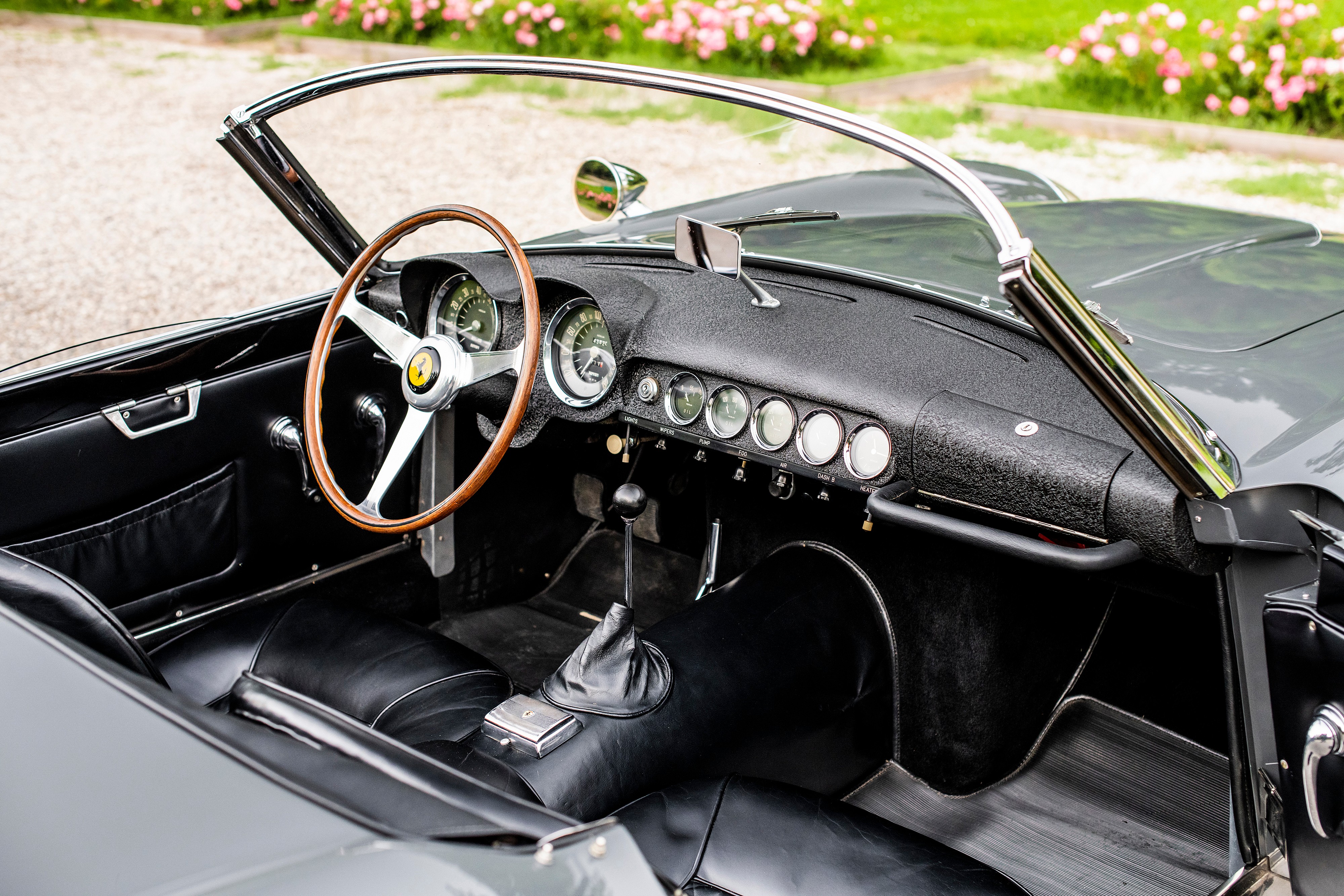 Originally, 280 horsepower was developed in its competition-spec Tipo 168 3.0-liter V12 engine, which propelled the Prancing Horse to a top speed of 156 mph. It’s only changed hands five times since it left the factory, the last time being 16 years ago. Adding immensely to its desirability is a certification from Ferrari Classiche—the Italian marque’s exclusive heritage cars department has confirmed that it retains its original “numbers-matching” engine, gearbox rear axle and bodywork.