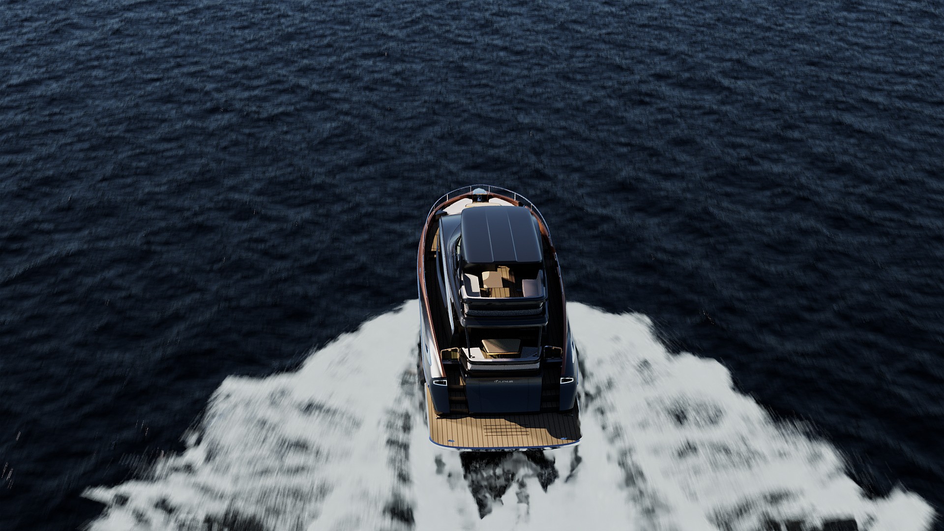 The idea is “to feel like a hideout in the middle of the sea, providing a space where discerning customers can feel free and at ease.” Among the enhancements are the lengthened flybridge, which has been extended by 1,400 mm and features a spacious lounge sofa and a barbecue grill. In addition, the swimming platform has been extended by 700 mm to better accommodate offshore activities.