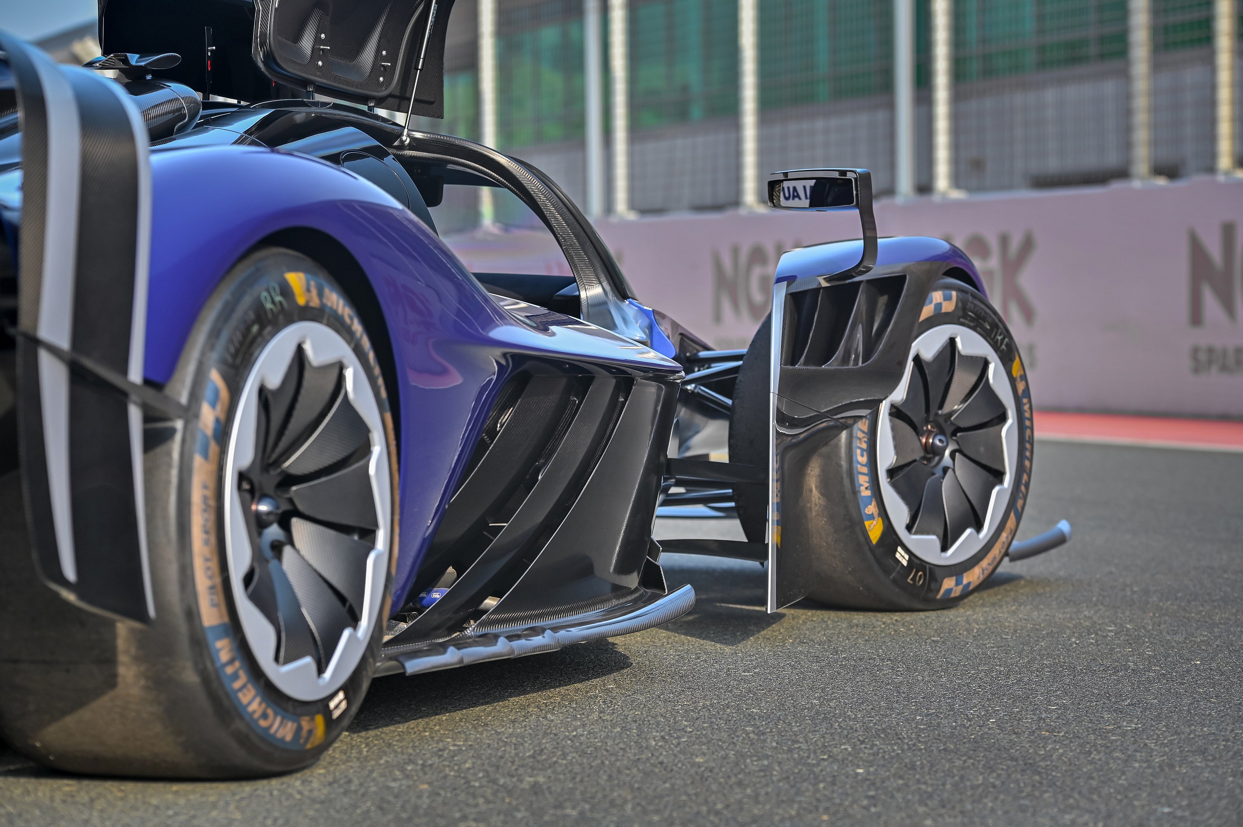 The diet continues with carbon fiber body work, carbon suspension, and the windshield and side windows, which are made from Perspex acrylic. The chassis has also been lengthened and widened at the front to accommodate a more aggressively aerodynamic shell with improved underbody and overwing airflow. Thanks to these design changes, the Valkyrie AMR Pro produces twice the downforce of the standard Valkyrie and can achieve lateral acceleration in excess of 3G.