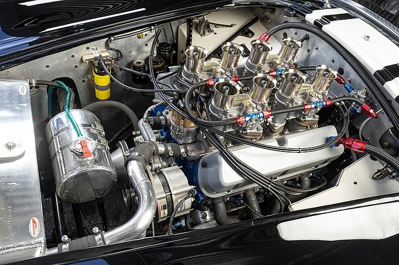 Build on the original chassis of the very first Cobra to compete in Le Mans, the vehicle was heavily campaigned by Martin Colvill, owner of the Horsely, England’s Bell & Colvill dealership. Over 100 races ran in the 1970s and 1980s, it earned 12 outright victories, 44 class wins, three Historic Sports Car Club Classic Sportscar Class A Championships, and two Aston Martin Owners Club’s Inter-Marque Challenge/Championships. Not to mention, Colvill piloted it to multiple class lap records at Silverstone, Brands Hatch, Donington Park, Oulton Park and Mallory Park.