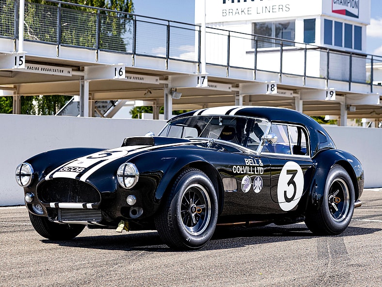 Subsequently campaigned in major historic race events, including the Le Mans Classic and Modena Cento Ore, “13 COB” has also run regularly in such renowned Goodwood events as the Shelby Cup, Revival Meeting’s RAC TT Celebration and the Members’ Meeting’s Graham Hill Trophy races. There it has consistently finished in the top ten, driven in more recent years by Anthony Reid, Nick Minassian and Murray Shepherd with Shepherd finishing fourth overall in 2024’s Graham Hill Trophy. In February 2019, ‘COB 13’ was displayed in the Royal Automobile Club’s Rotunda in Pall Mall, London—the first Cobra ever to be so honored. Overall, “13 COB” remains one of the most original surviving competition AC Cobras, retaining not only its original chassis but also its original body throughout its life and competition career. Indeed “13 COB” remains a genuinely historic racing artefact. It has been, and continues to be, fastidiously maintained to the correct FIA homologation specification and FIA Appendix K regulations, without recourse to non-period modifications.