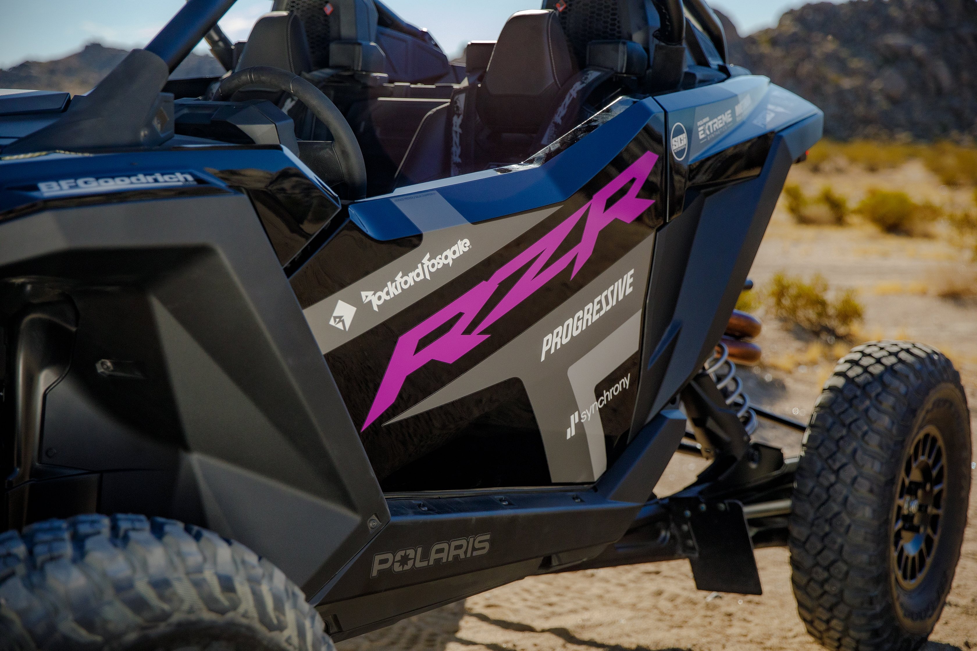 If MacCachren secures his second consecutive Baja 1000 win, the RZR Pro R Race Replica’s purple, black and gray livery covering the doors, hood and fascia will officially be historic. The livery returned this year after MacCachren ended the 2023 season in spectacular fashion by notching his first podium of the year with a victory at the grueling 1,310-mile endurance event. Complementing the RZR Pro R Race Replica’s triumphant “Podium Purple” styling is color-matched RZR Fang accent lighting.