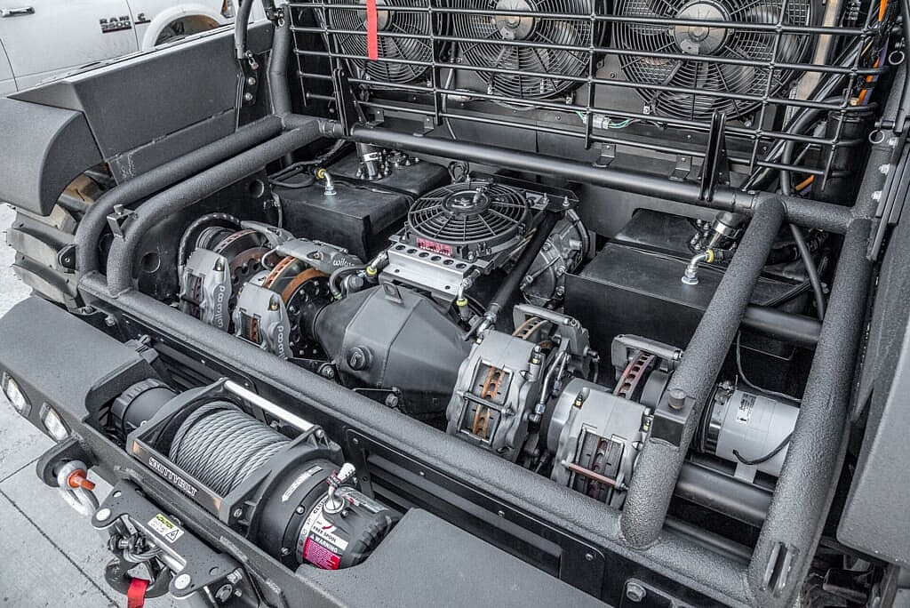 Power comes from a 6.6-liter Duramax turbodiesel V8—the same engine found in GM’s heavy duty pickups. Except here it’s been tuned by Pacific Performance Engineering out of Montclair, Cali to crank out 800 horsepower and 1,500 pound-feet of torque through a five-speed “extreme duty” Allison automatic transmission.