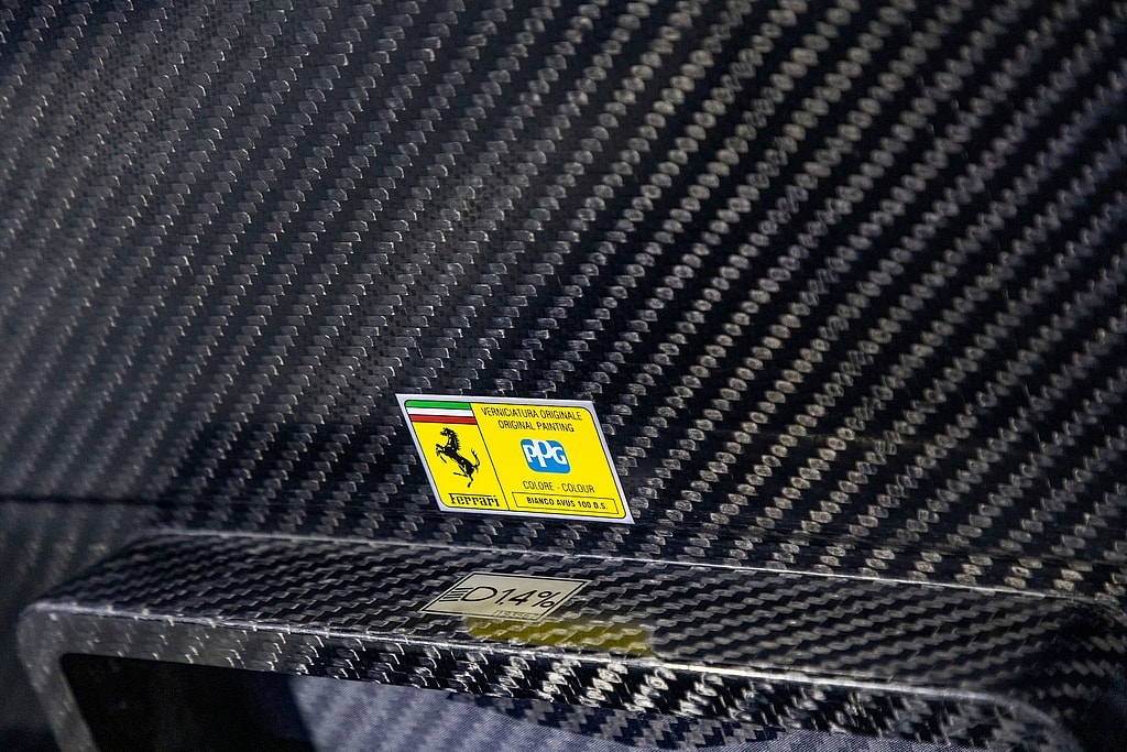 That’s because the 20 “Extracampionario” cars finished in a non-standard color were only offered to Ferrari’s wealthiest and most loyal customers. This one, chassis 133023, is the sole Enzo painted in Bianco Avus white out of the 400 Enzos produced in the aughts.