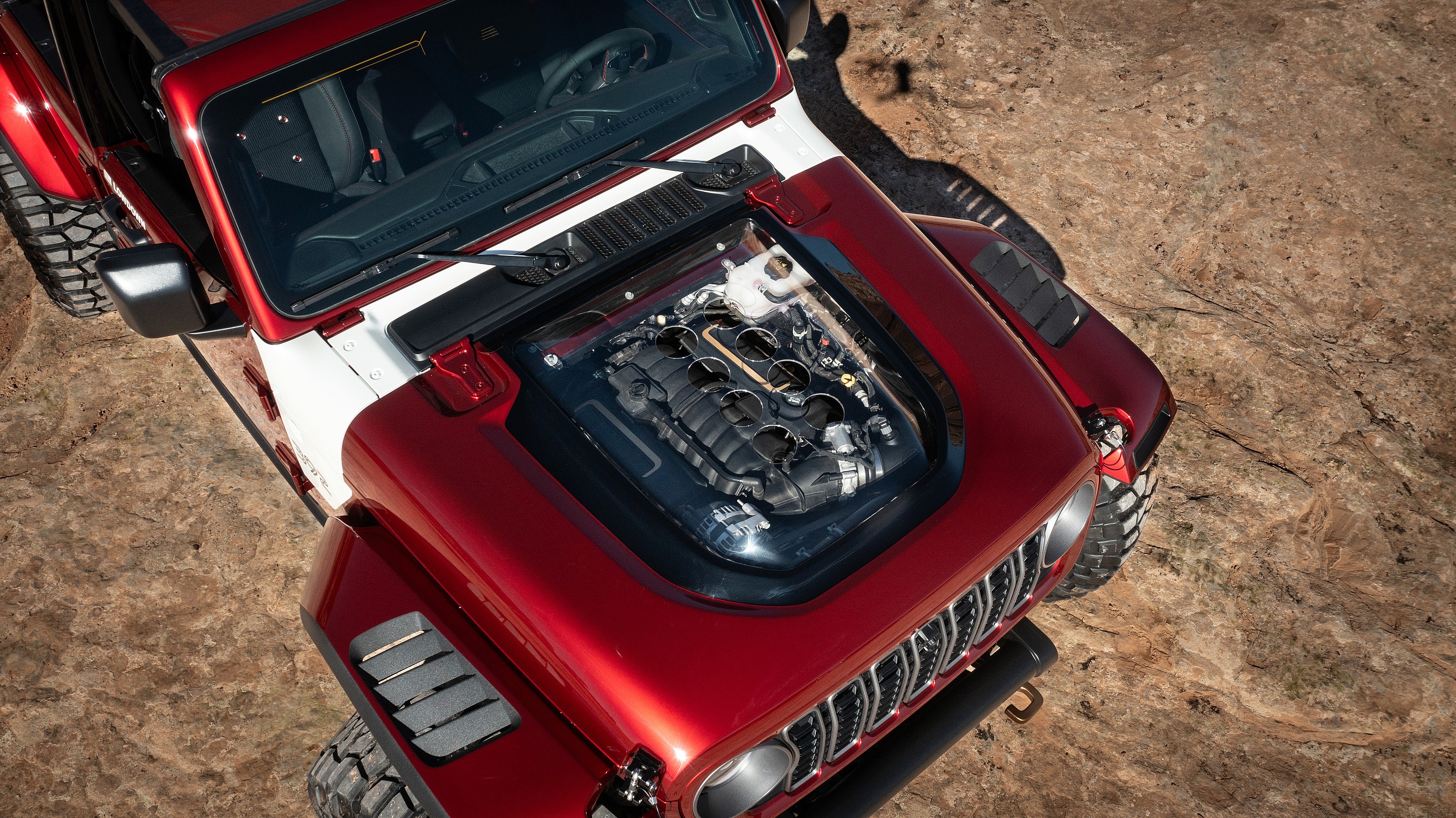 Like its Lower 40 predecessor, the Jeep Low Down is powered by a V8 engine, though in this modern interpretation, that translates to the formidable 475-horsepower 6.4-liter 392 V-8 engine, which is mated to an eight-speed automatic.
