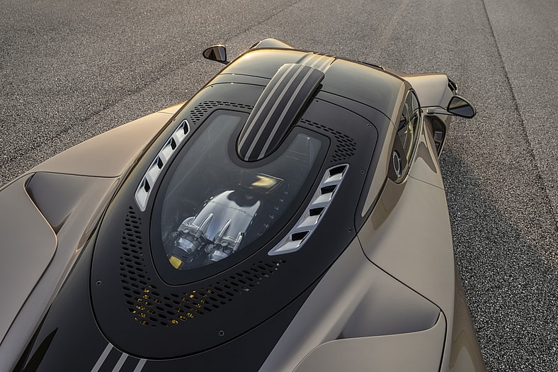 The body design is based on the already exclusive “Stealth Series,” which is covered entirely in exposed carbon fiber that Florey had tinted Cocoa and painted River Sand Metallic to create the “color of rich champagne.” It also previews bodywork elements from the forthcoming Venom F5 Evolution, including a new front splitter, reshaped dive planes, re-sculpted fender louvres, a new rear deck with integrated lip spoiler, and a significantly taller rear wing. Indeed, this is the most expensive Hennessey vehicle to date, which is why the elite American automaker chose to unveil it at Monterey Car Week’s prestigious The Quail, a Motorsports Gathering.