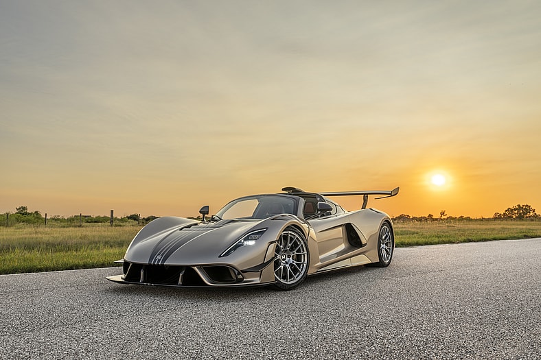 Giving Rolls-Royce and Pagani a run for their money, each switch, toggle, and rotary controller has been reengineered with horology-grade detail—including a luminous-infill switchgear and a parking brake lever that is “machined to deliver a bolt-action feel”—doesn’t get more American than modeling a handbrake’s feel off of a hunting rifle action. Florey will be surrounded by Hennessey’s next-gen “XCell_2” carbon monocoque, featuring improved stiffness, seating ergonomics, and pedal box positioning.