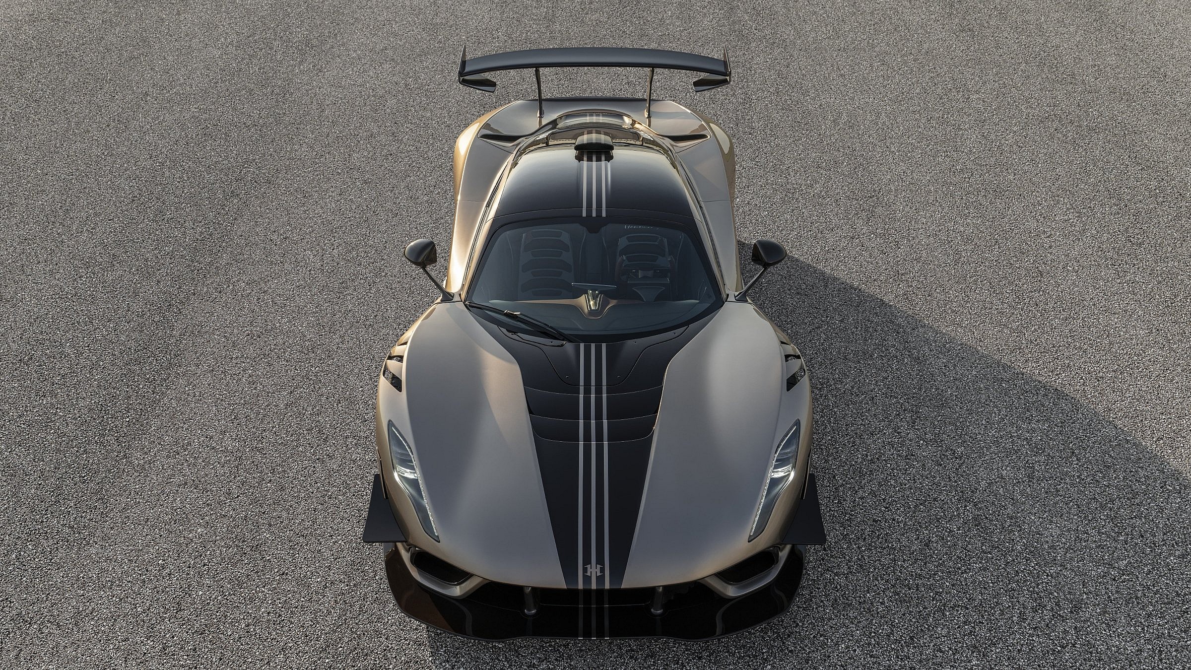 The body design is based on the already exclusive “Stealth Series,” which is covered entirely in exposed carbon fiber that Florey had tinted Cocoa and painted River Sand Metallic to create the “color of rich champagne.” It also previews bodywork elements from the forthcoming Venom F5 Evolution, including a new front splitter, reshaped dive planes, re-sculpted fender louvres, a new rear deck with integrated lip spoiler, and a significantly taller rear wing. Indeed, this is the most expensive Hennessey vehicle to date, which is why the elite American automaker chose to unveil it at Monterey Car Week’s prestigious The Quail, a Motorsports Gathering.