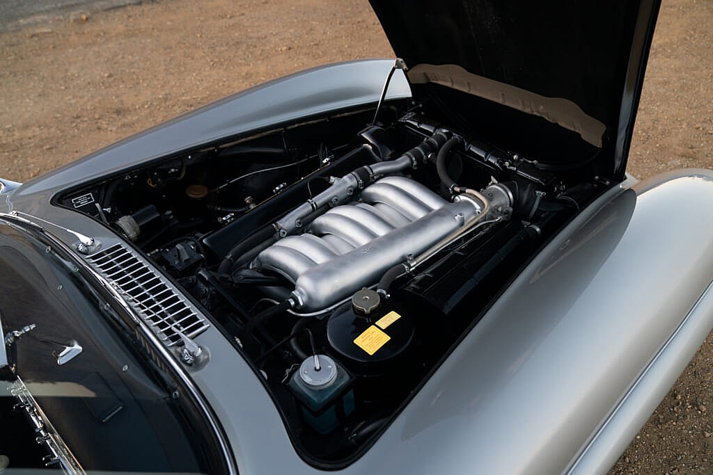 RM Sotheby’s lists an extensive provenance for this car, which was originally ordered with silver gray metallic over a blue vinyl/blue gabardine interior by Mercedes-Benz agent Joseph F. Weckerle, an accomplished racer based in Casablanca, Morocco.