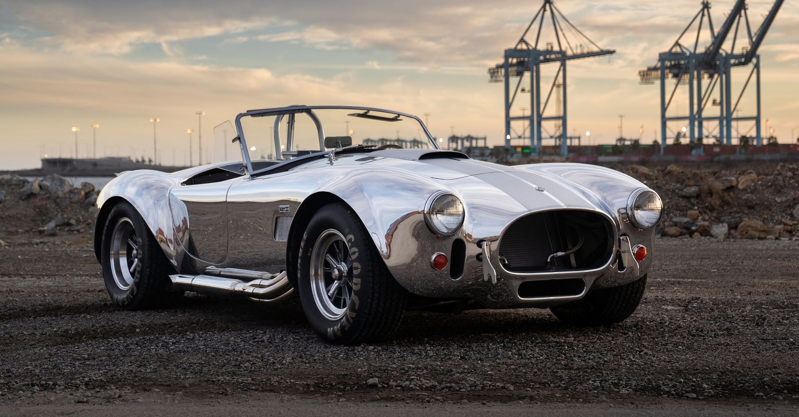 These cars were meant to be modern versions of the OG 427 Cobras, similar in concept to Aston Martin’s DB5 continuation cars. This one, chassis CSX 4428, jumps out with a racing-striped and polished aluminum body built by Kirkham Motorsports to 1965 specifications.