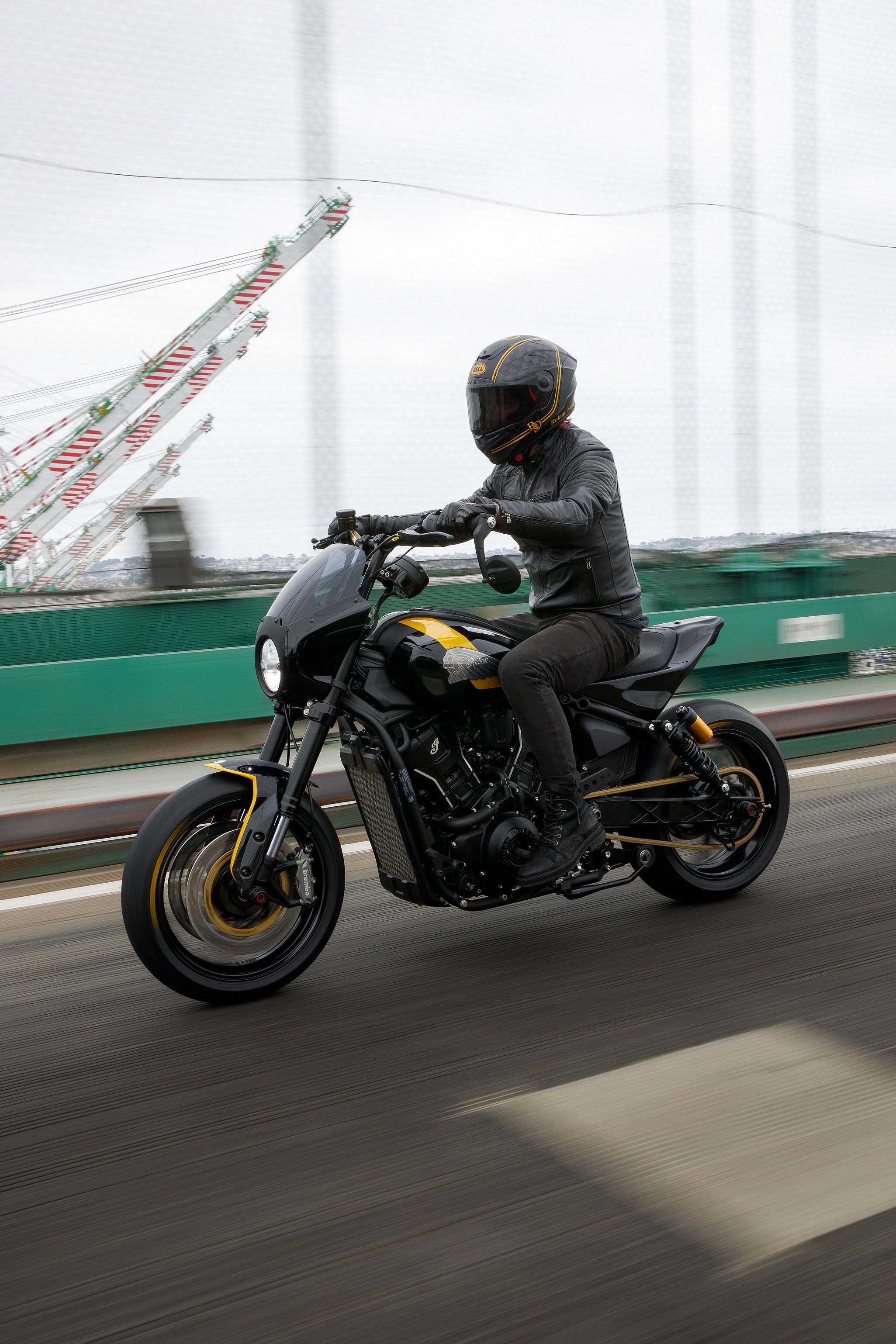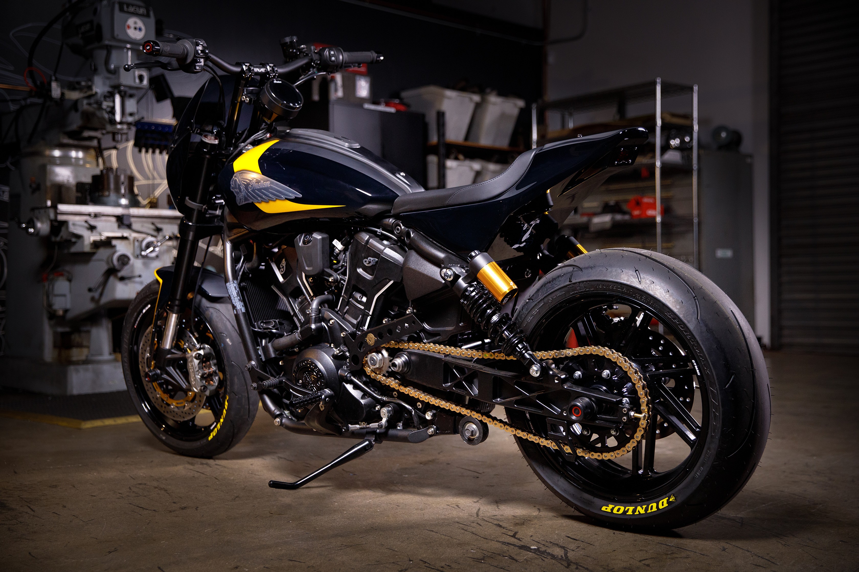 But there were two other touches in particular that elicited the strongest reactions from Dun. Upon seeing his ride, he exclaimed, “This thing’s perfect”—the black-and-yellow color scheme just so happens to perfectly match the album art for 21 Pilots’ Trench, although Sands had penned the design before he knew that Dun would be the recipient. Then, after firing up the engine, an ear-to-ear smile formed as soon as the musician heard the V-twin’s diabolical belt through the RSD-fabricated exhaust.