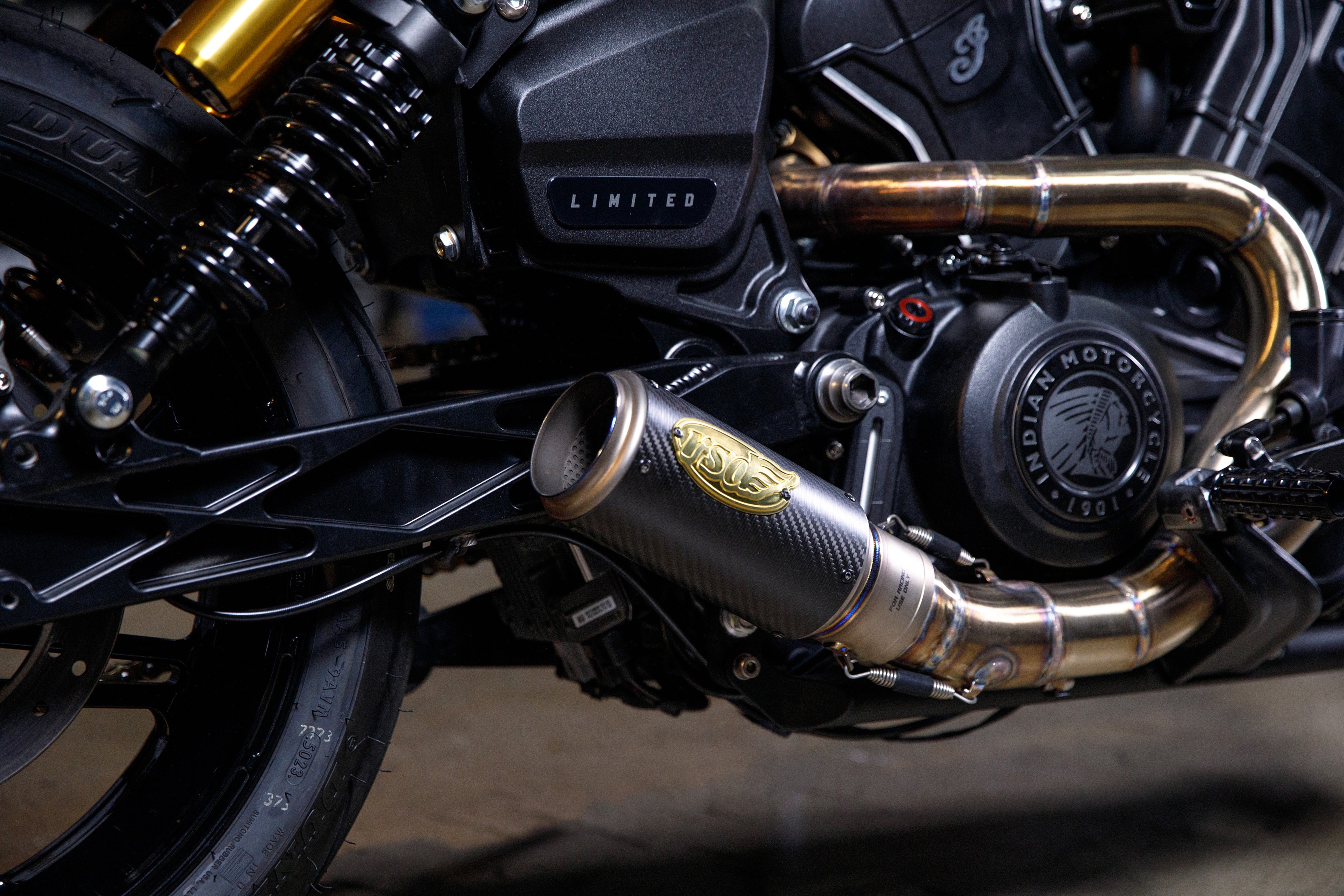 This build comes courtesy of Roland Sands, the founder of Long Beach’s Roland Sands Design (RSD) who helped make the make the racy Indian FTR even racier with this year’s limited-edition, Super Hooligan series-inspired livery. What Sands did for Dun’s one-off Indian Scout is significantly more dramatic.