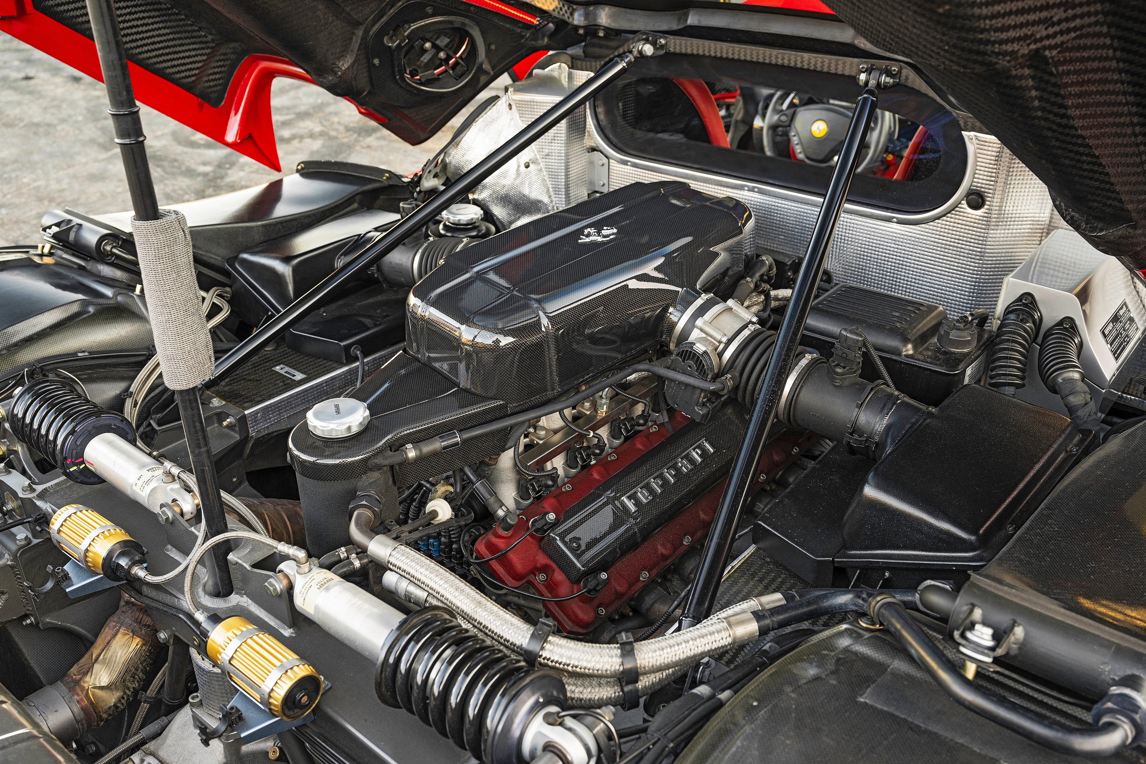 With the help of racy components such as Nikasil-lined cylinder walls, titanium connecting rods, and a torque-boosting telescoping intake manifold, the Enzo’s 6.0-liter V12 originally sent 651 horsepower through an F1-derived six-speed dual-clutch transmission. The resulting zero-to-60 mph time was clocked at 3.3 seconds on the way to a 218-mph top speed.