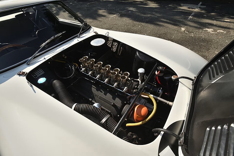 This particular model is the only example of 36 total 250 GTOs finished in “Bianco Speciale” white from the factory—the much more common red coat was worn by the aforementioned record setter. Rumor has it that an almost scandalous exception was made for its original buyer, British race team owner John Coombs. “It was a huge deviation from Ferrari’s strict color conventions—one that required quiet internal approval. It is widely believed that Alfredo Reali, Ferrari’s discreet liaison for bespoke and sensitive client requests, played a crucial role in securing this unprecedented exception,” Mecum writes.