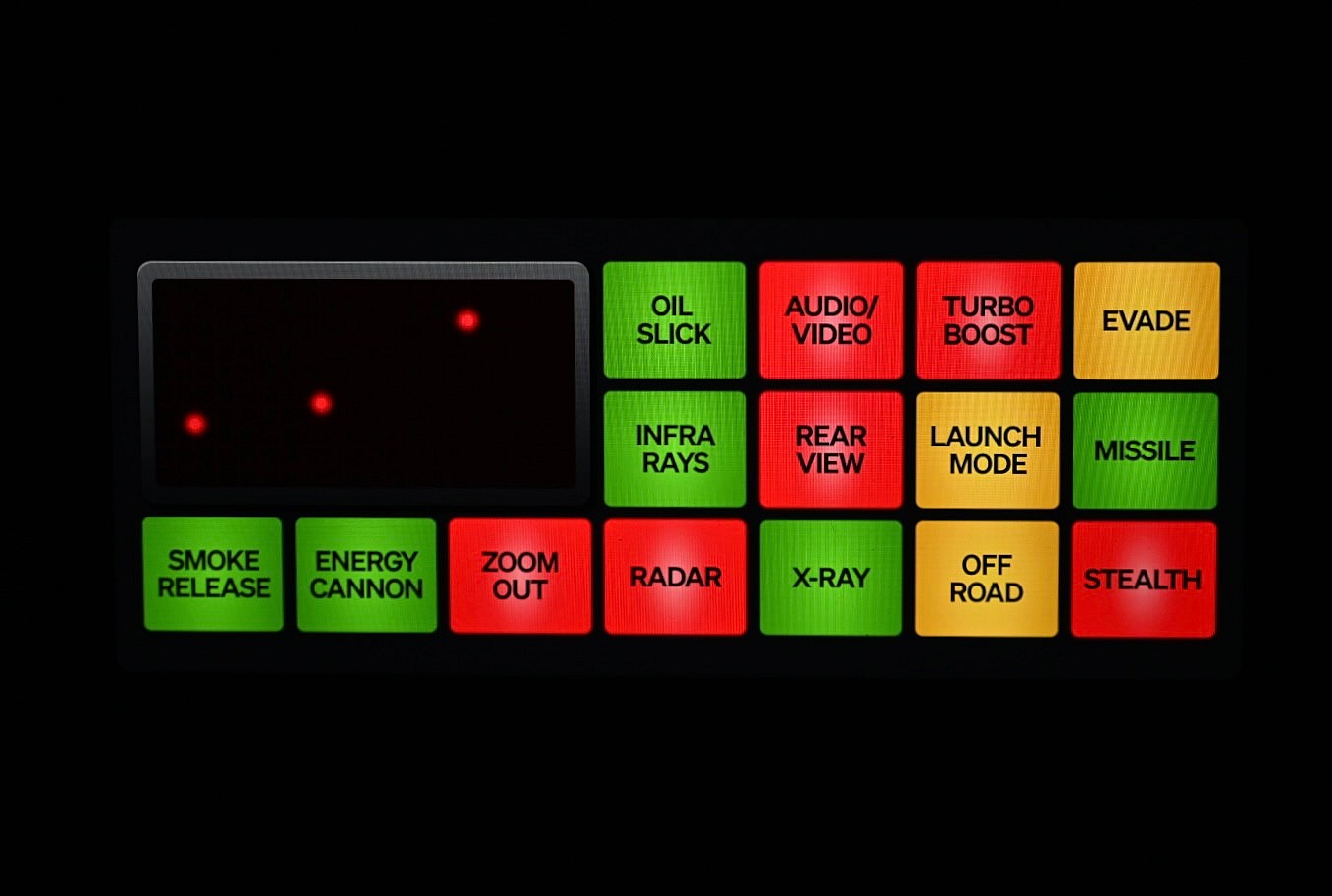 Rivian even made the exterior lightbars on the front and rear cascade back and forth and make the same sound as the red beam of the scanner on the Hoff’s legendary ride. Both dashboard screens are taken over by the theme, and on the back seat screen you can find the little buttons with things like Oil Slick, Missile, and Smoke Release that I remember watching Michael Knight employ on his enemies and dreamed of doing in my father’s Volvo.