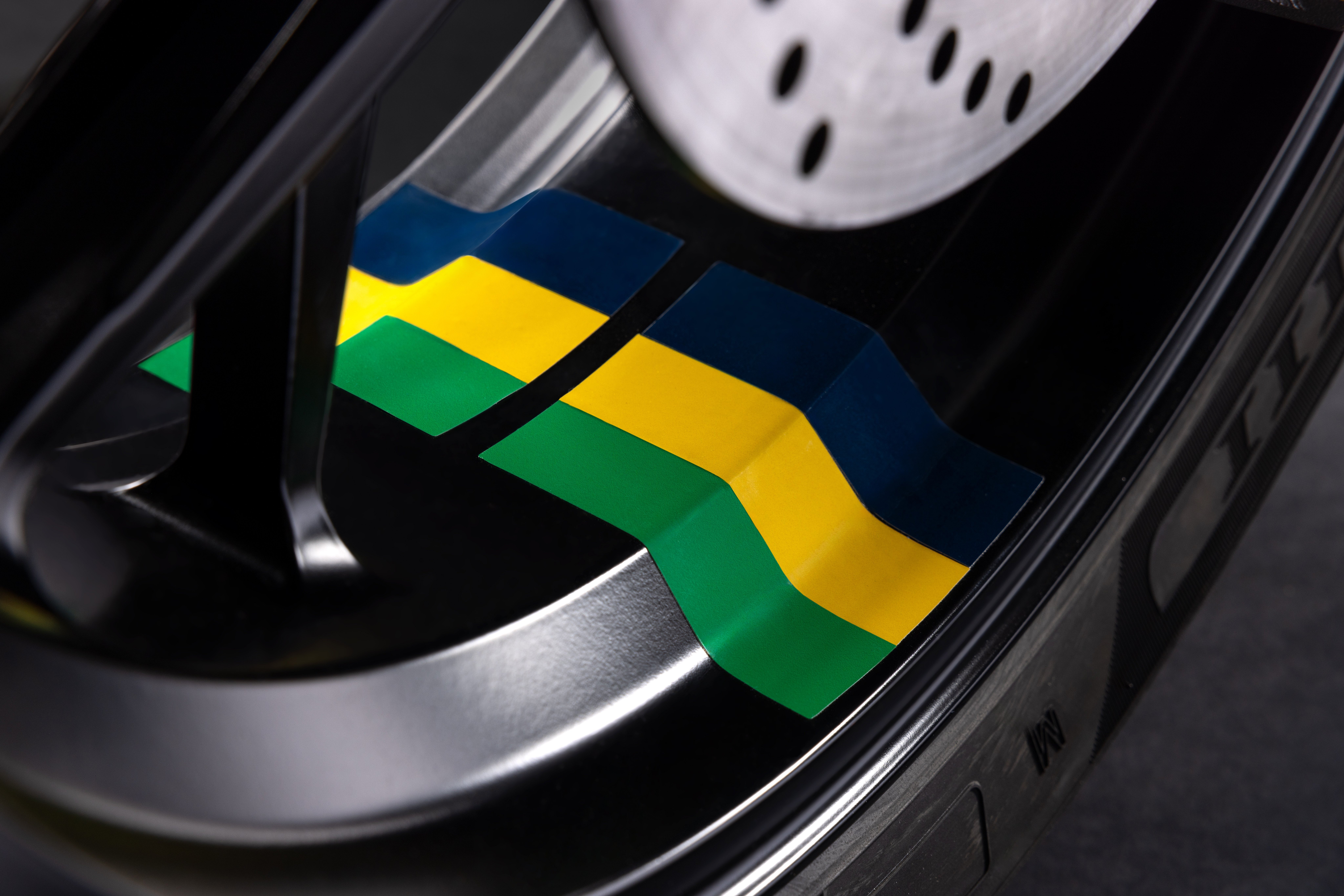The yellow, green and blue livery was inspired by one of Senna’s favorite F1 helmet designs, which proudly featured the Brazilian flag’s colors. Black rims emblazoned with the Brazilian flag were made specifically for this model and contrast with bright yellow Brembo brake calipers. Anyone who saddles up in the brilliant blue seat is also treated to a special dashboard animation triggered by ignition.