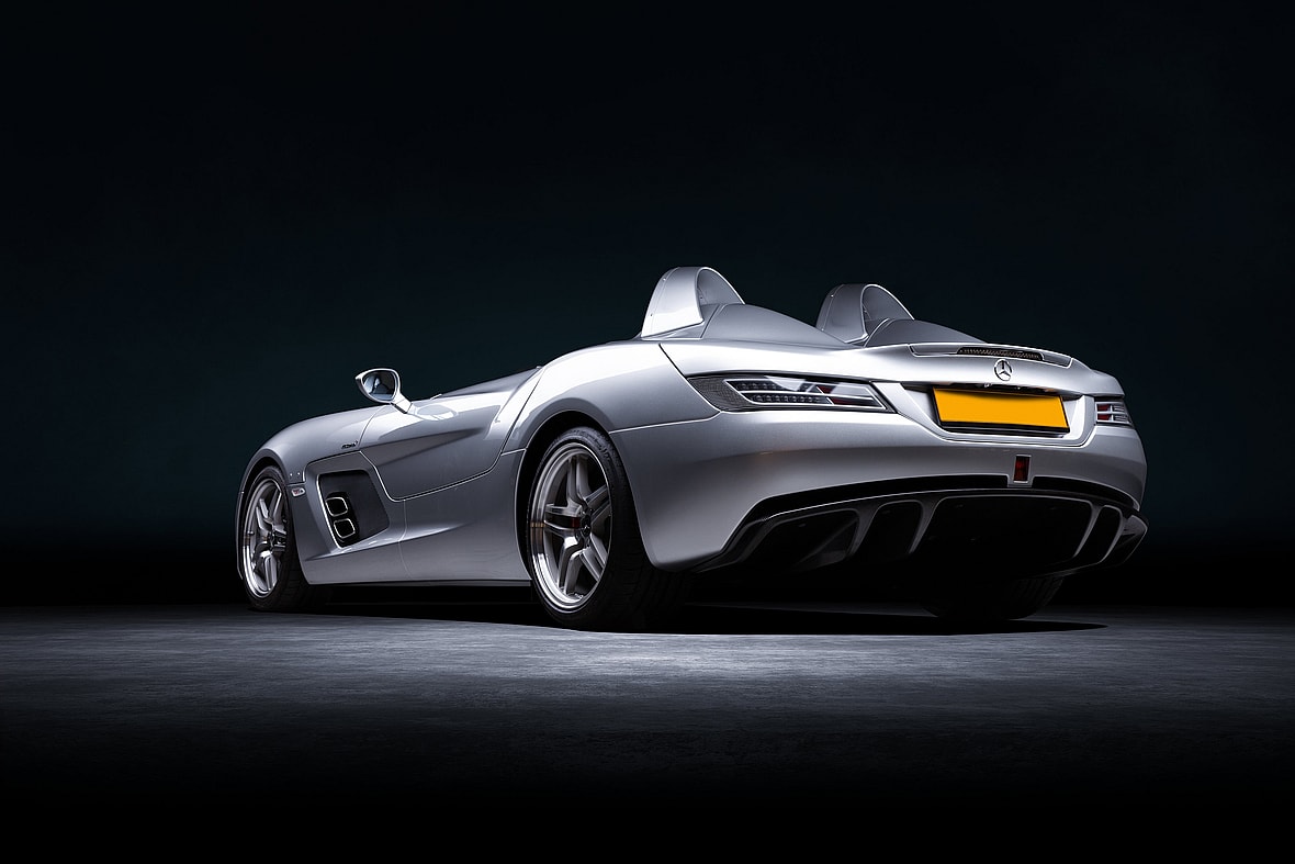 Mercedes fans will recognize the “Sport Light Racing” abbreviation from the legendary, 1955 Mille Miglia-winning 300 SLR Gullwing, a prototype of which recently set the record at $143 million for the world’s most expensive car.