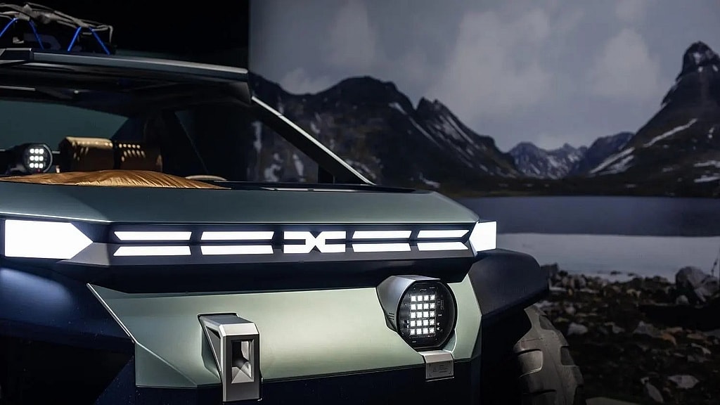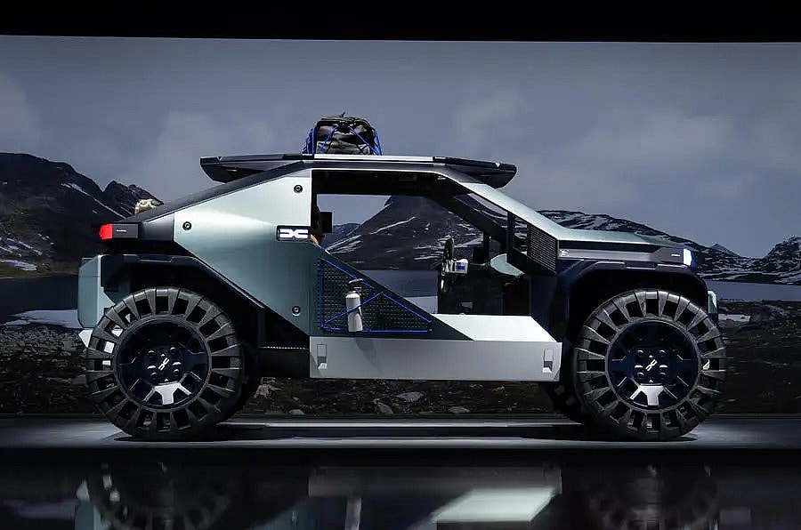 The car, with its rugged, oversized wheels, is meant to showcase how Dacia can cater to outdoor enthusiasts with a sustainable off-road vehicle.