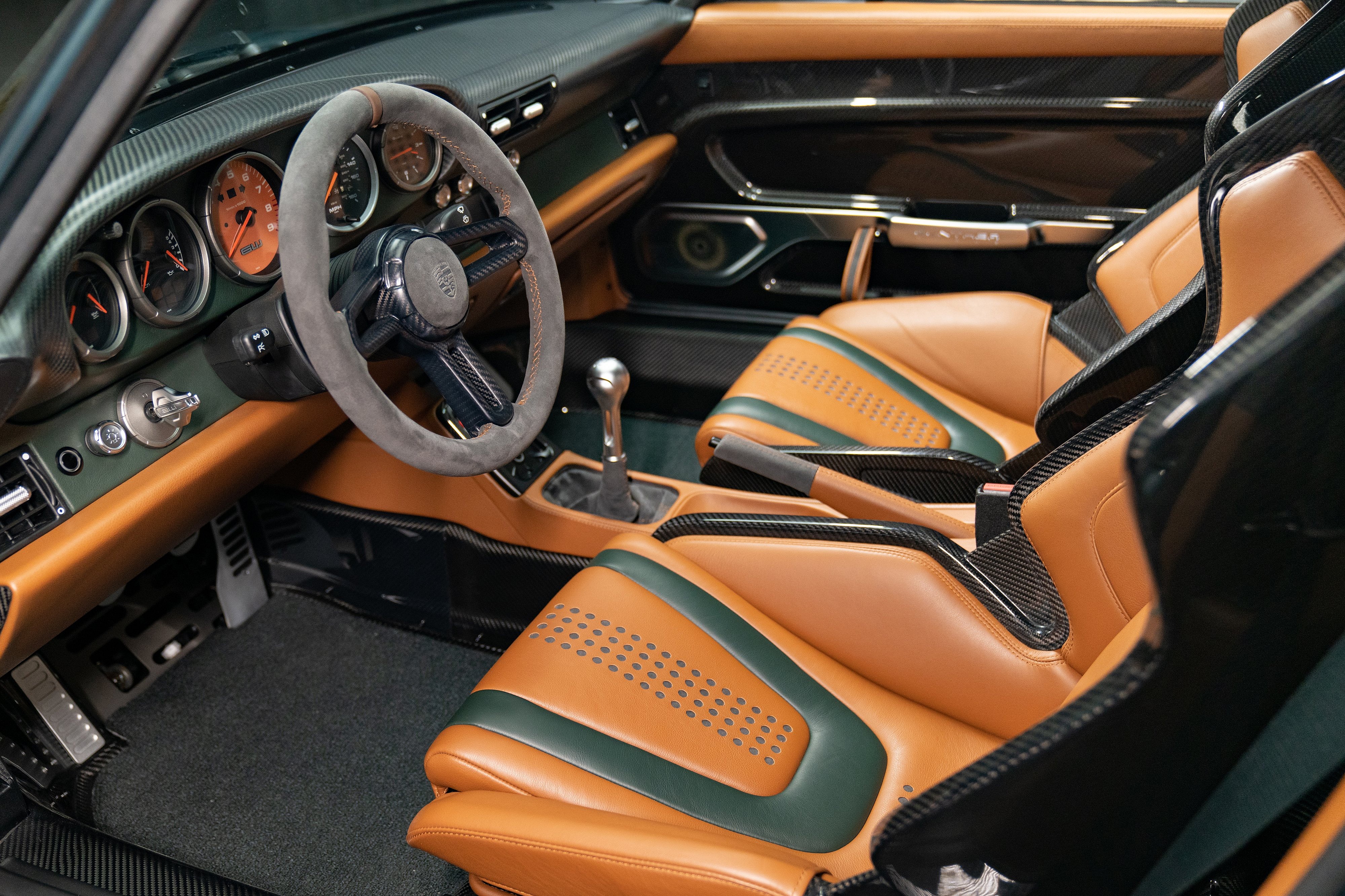 Though purists claim the stock engine verges on perfection, the 3.6-liter flat six-cylinder also gets the Remastered treatment by Rothsport Road and Race in Sherwood, Oregon. The company pumps up displacement substantially to 4.0 liters and installs race-spec equipment, including two-stage MoTec engine management, individual throttle bodies, and a custom intake design based 996-series Porsche 911 GT3’s. Rothsport’s handiwork results in a drastically boosted output clocking in at 435 horsepower and 312 pound-feet of torque, up from the 270 hp and 243 pound-feet of torque generated 3.6-liter unit. Gunther Werks also goes to work on the interiors, outfitting 80 percent themselves and replacing the other 20 percent with modern Porsche equipment.