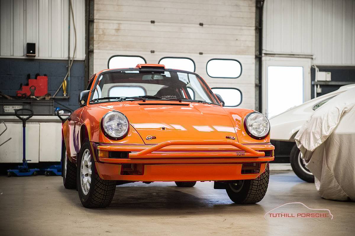 Though the historic-sports-cars-as-rally-cars trend keeps gaining momentum, it still surprises some people to see their favorite asphalt-ripping machines retuned to sling gravel. England’s Tuthill Porsche is fueling interest in so-called 911 Safaris with the construction of this fiery orange build, which is destined for its owner in the U.S.