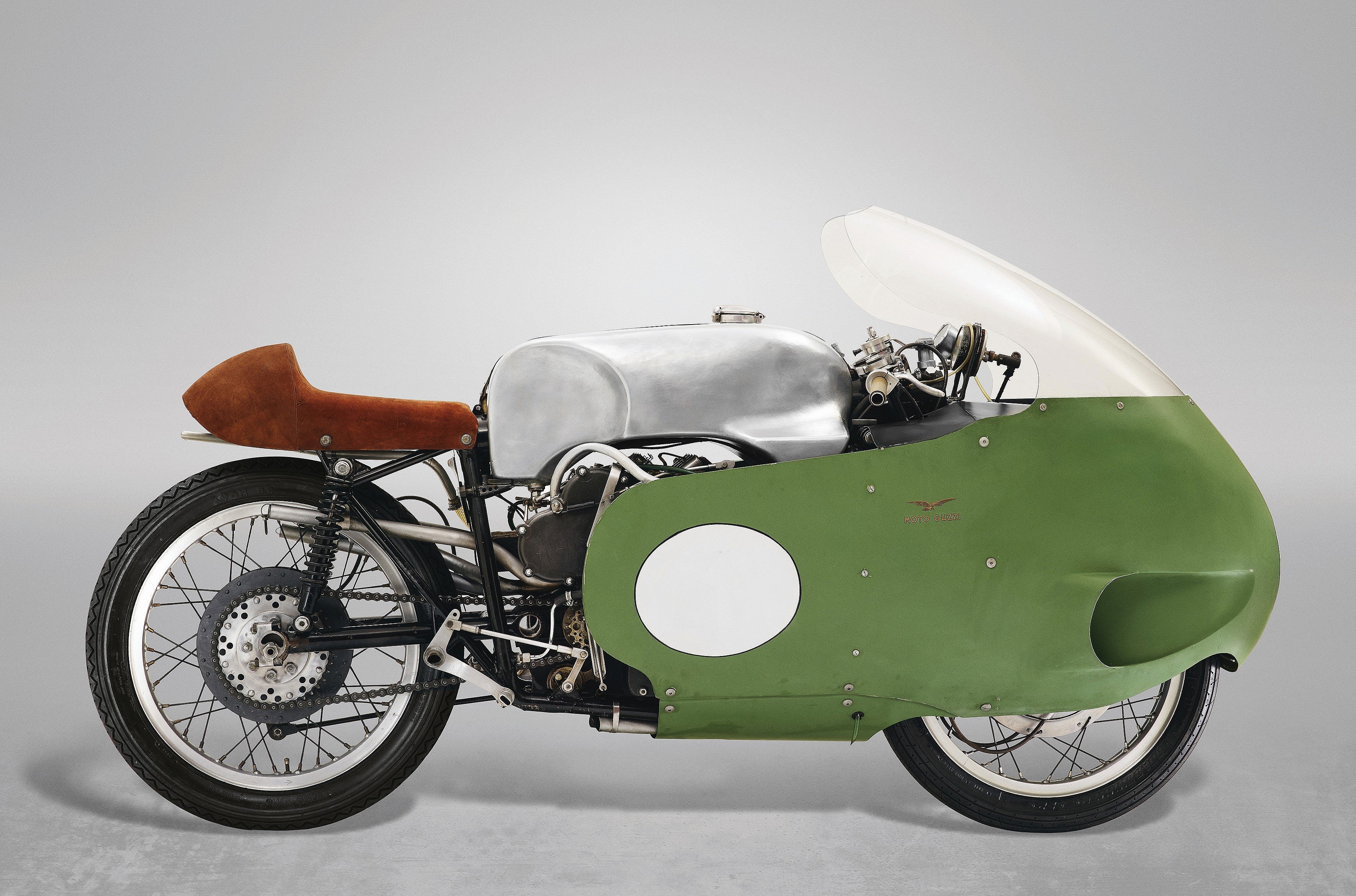 And then there’s the only Vincent Series C White Shadow painted Chinese Red; a bubble-faired 1957 Moto Guzzi racer powered by a 500cc V8; and the one-off 1972 Ducati 750 Imola— believed by some to be the most valuable motorcycle in the world.