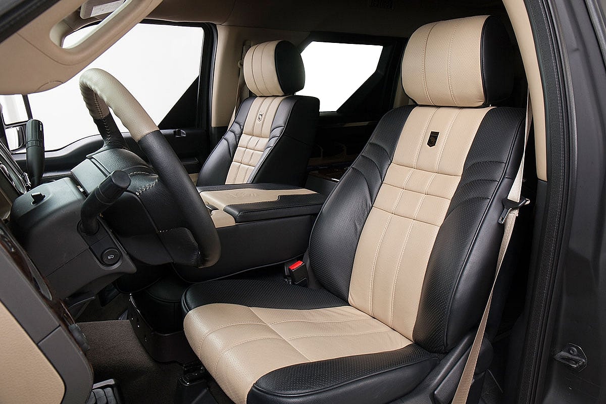 But instead of the stretched seven-passenger model, the Executive Package provides a more exclusive five-passenger layout that includes premium leather luxury power seats with heat control and foot rests, plus exotic wood, leather and chrome trim.
