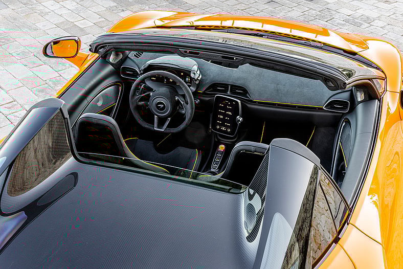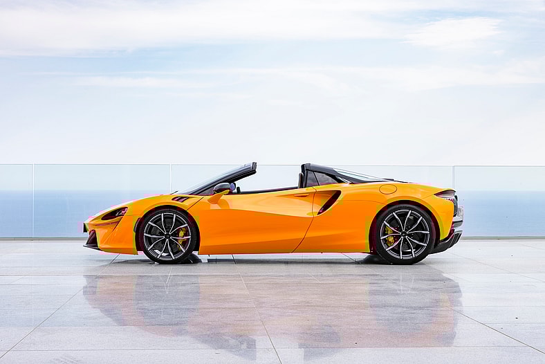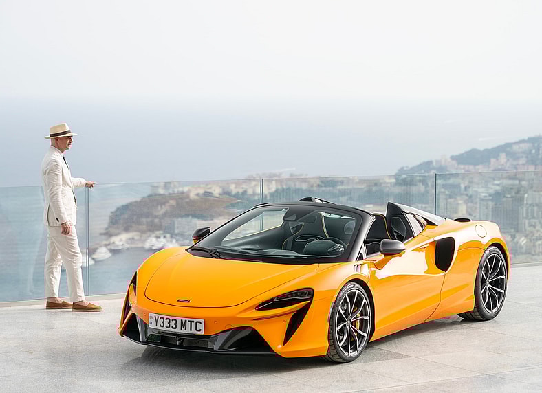 Key points of this exchange include a carbon fibre monocoque, carbon brakes, and caliper-mounted brake cooling ducts. “Combined with a 3.0-liter V6 engine with 680 hp (690 bhp) and the thrill of open-air motoring that the Artura Spider provides,” Ormisher remarks, “it’s never been easier to emulate your favorite F1 driver.” And do it in impeccable style.