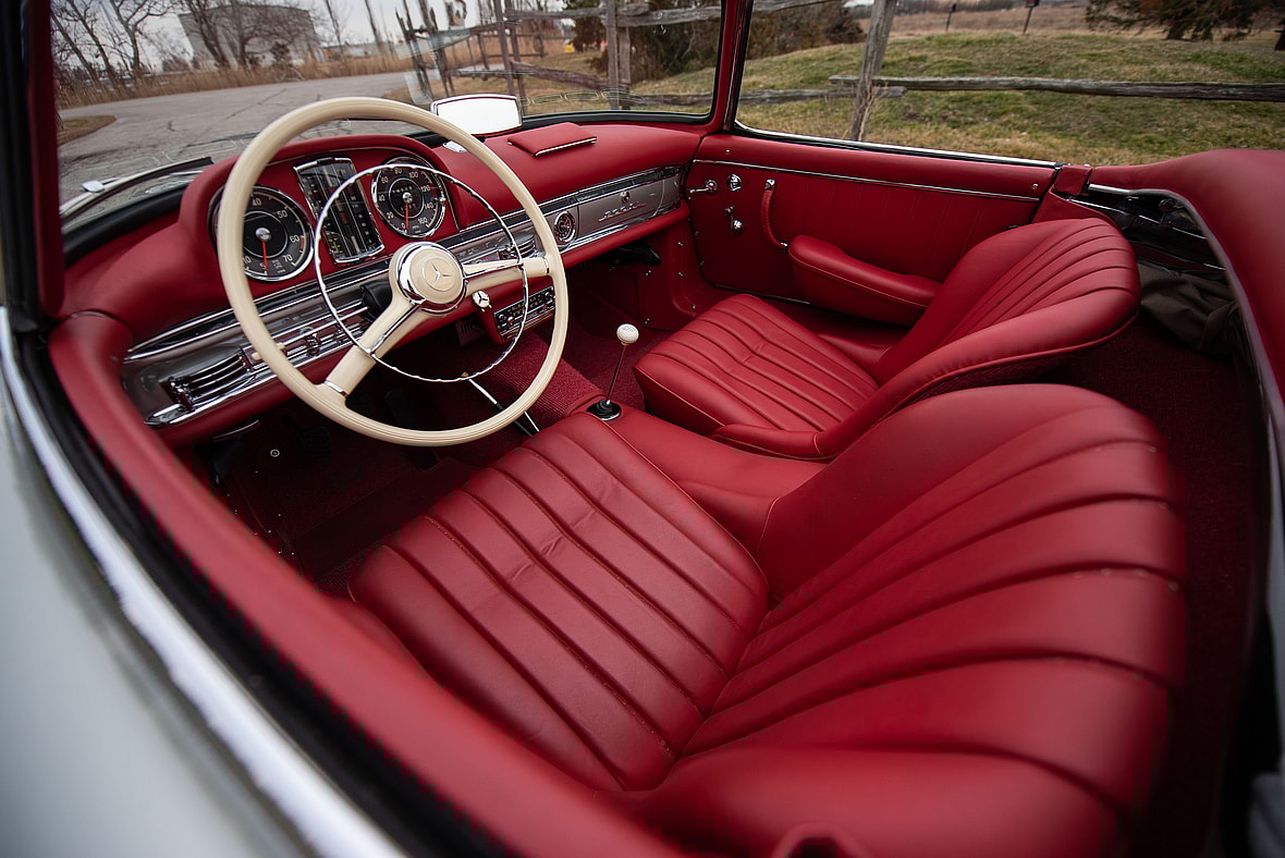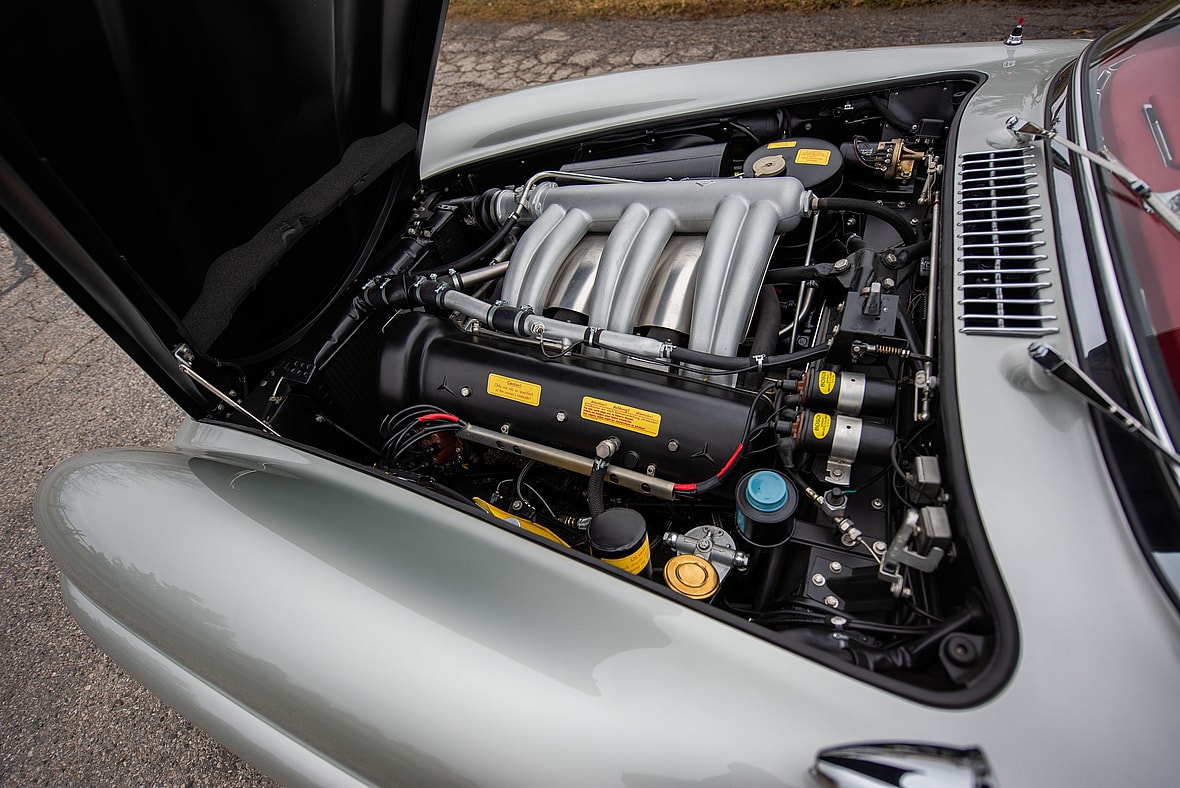 The original engine and gearbox were fully rebuilt, utilizing only factory-correct components supplied by Mercedes-Benz Classic. Refinished in its original colors, the car was test-driven for 300 miles and before being subject to an additional service to ensure it ran and drove as new.