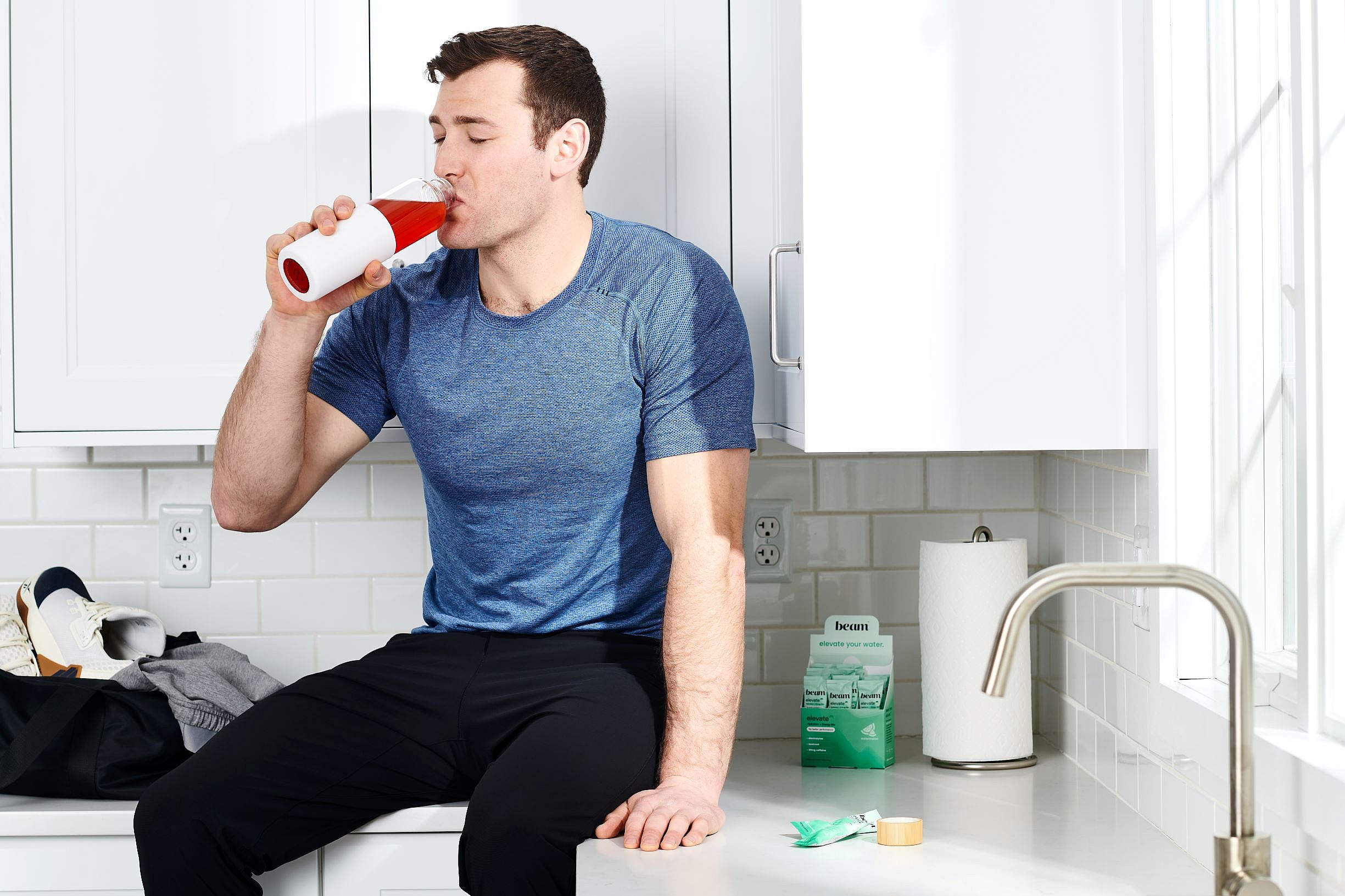 So Moran and beam co-founder Matt Lombardi, both former pro athletes, went about crafting a hydration product that could keep up with their lifestyle. While drinking more water may seem like an easy solution, Moran notes it’s more complicated than that. “It’s just part of the equation,” he says. “You need electrolytes and sodium to support you and replenish the things that are coming out of your body.”