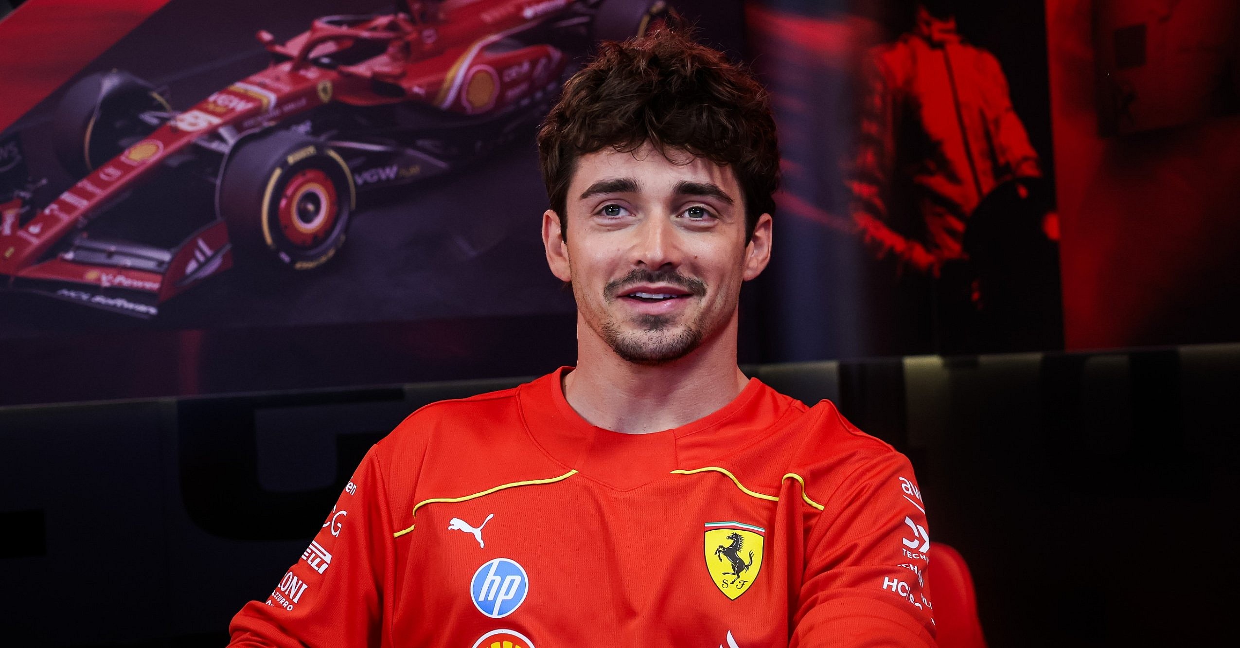 Purosangue, literally translated, means pure blood, which is the Italian word for thoroughbred. And this racehorse is whisking me to the F1 paddock before the qualifying races to meet with none other than Charles Leclerc. Fresh off his historic hometown win in Monaco, Scuderia Ferrari’s star driver is the man of the hour. Young, handsome, famously polite and tremendously talented, he’s one of the most endearing top athletes in the world.