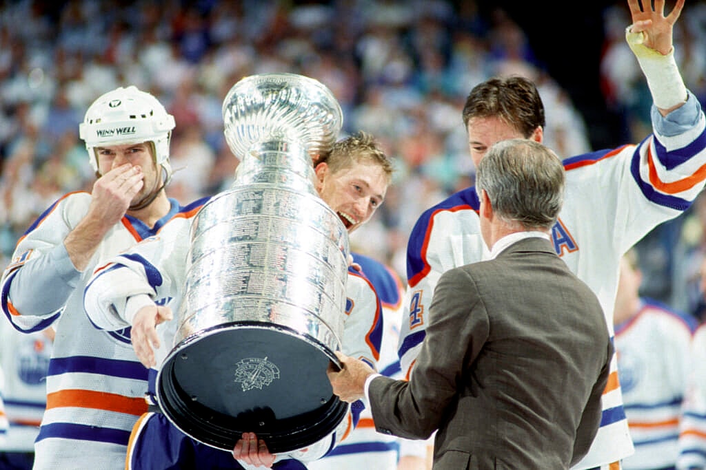 No list of hockey greats would be complete without The Great One himself. Although not as climactic as the other Cup clinchers, there’s a reason this one stands out for us. This was Wayne Gretzky’s final goal while wearing an Oilers jersey. After the game, The Great One asked for a pic of the whole Oilers organization with the Cup—a tradition has stood ever since.