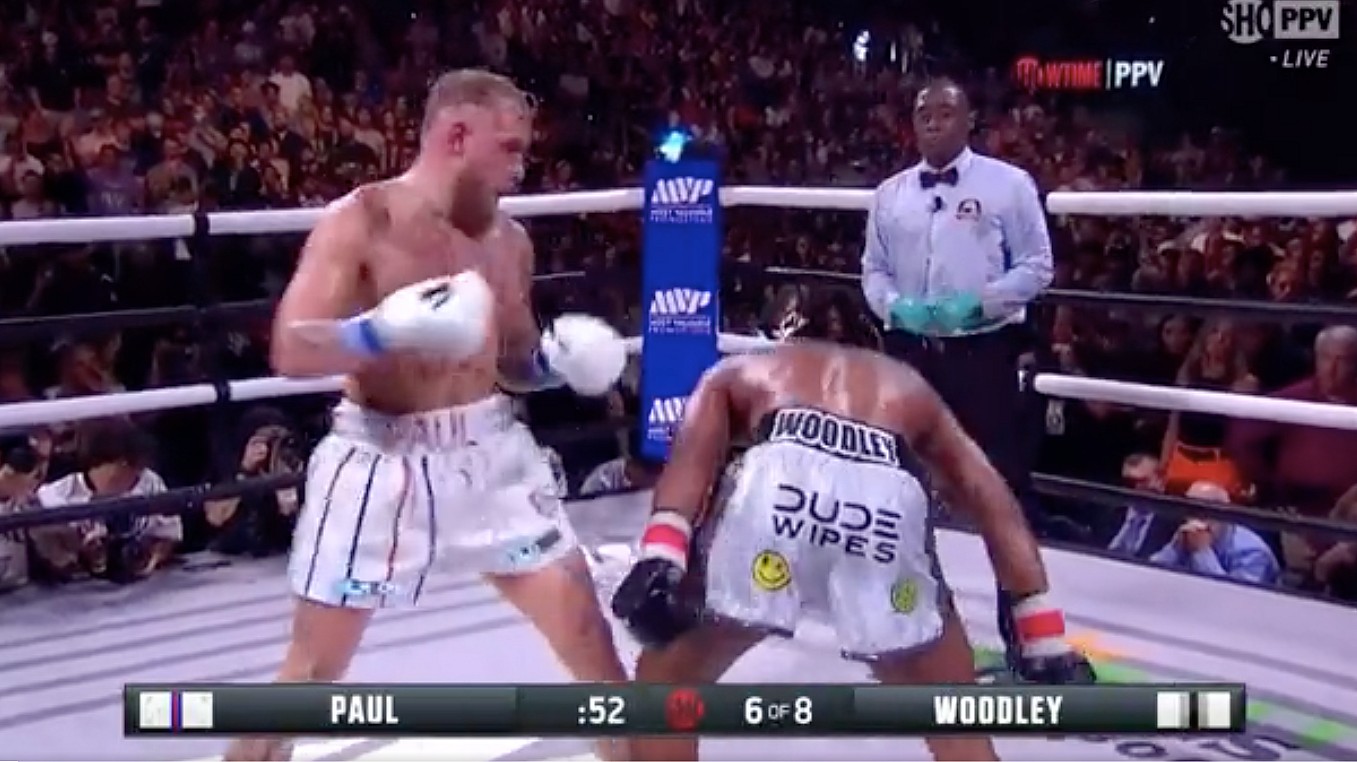 But while Paul may not have elite boxing skills, he showed once again that he’s got solid power in his right hand. Paul, 24, found an opening in the sixth and unleashed a devastating overhand right that knocked Woodley, 39, out cold, leaving him face down in the center of the ring.