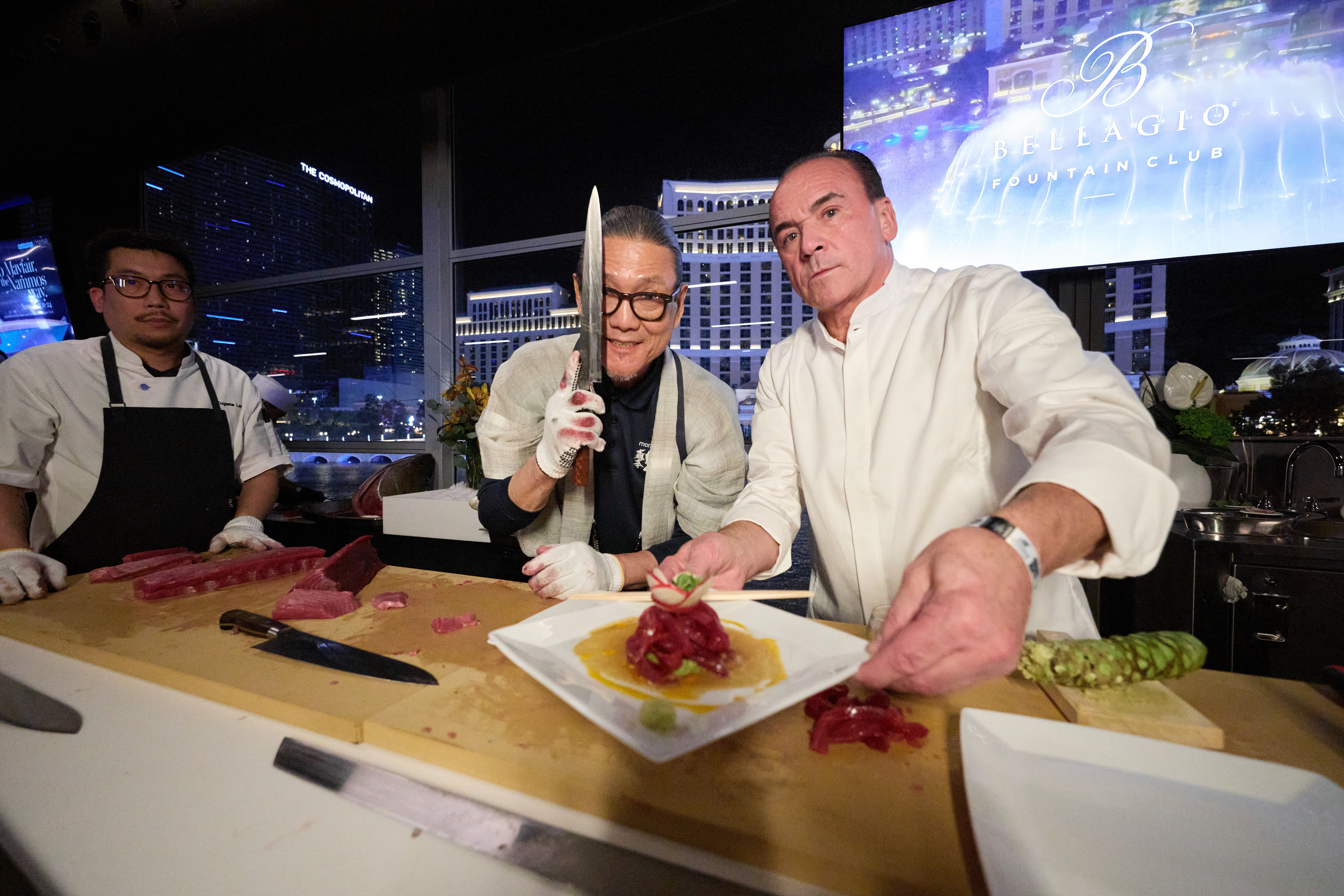 And these chefs did not just design the menu, they were there right in front of you cooking up their dishes firsthand for guests to enjoy. We had Wolfgang Puck serving us melt-in-your-mouth short rib, and at another point Japanese superstar Masaharu Morimoto carved up a tuna two feet in front of us with the help of the eminent Jean-Georges Vongerichten, whose Prime steakhouse we ate at the night before enjoying one of our best dining experiences of 2024.