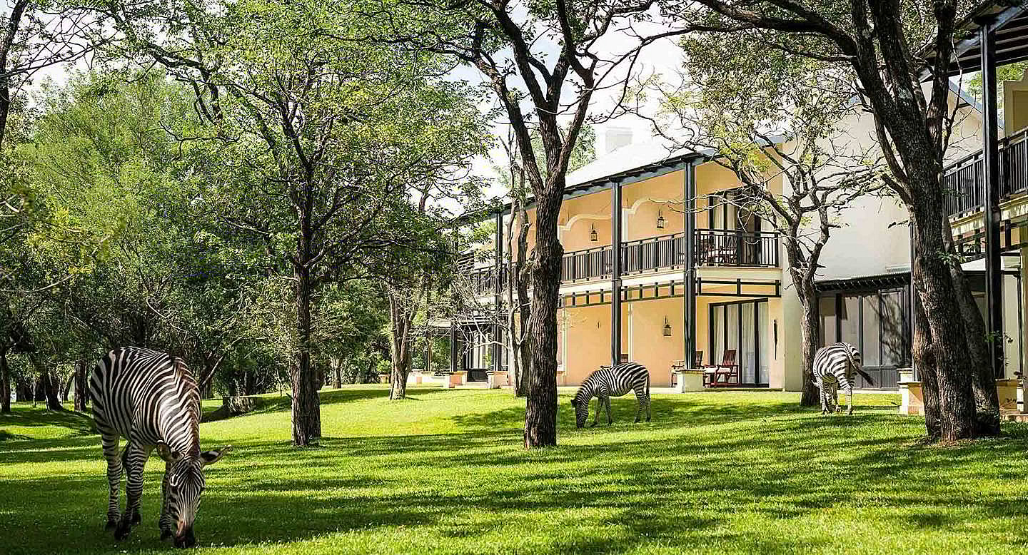 When Prince Harry took his then-girlfriend Megan Markle to see Victoria Falls, they stayed at the Anantara Royal Livingstone Lodge — and a few months later Will Smith bunked down there… and for good reason. Set on the banks of the mighty Zambezi River and perched on the lip of Victoria Falls, the Royal Livingstone is one of the few hotels in the world set almost on top of one of the Seven Wonders of the World as well as inside a UNESCO wildlife park, Mosi-Oa-Tunya. Zebras and giraffe roam the grounds as free lawnmowers and tree trimmers, rainbows fill the sky in view of the hotel’s river deck and the boat ride to the resort is a scene from the Humphrey Bogart classic African Queen.