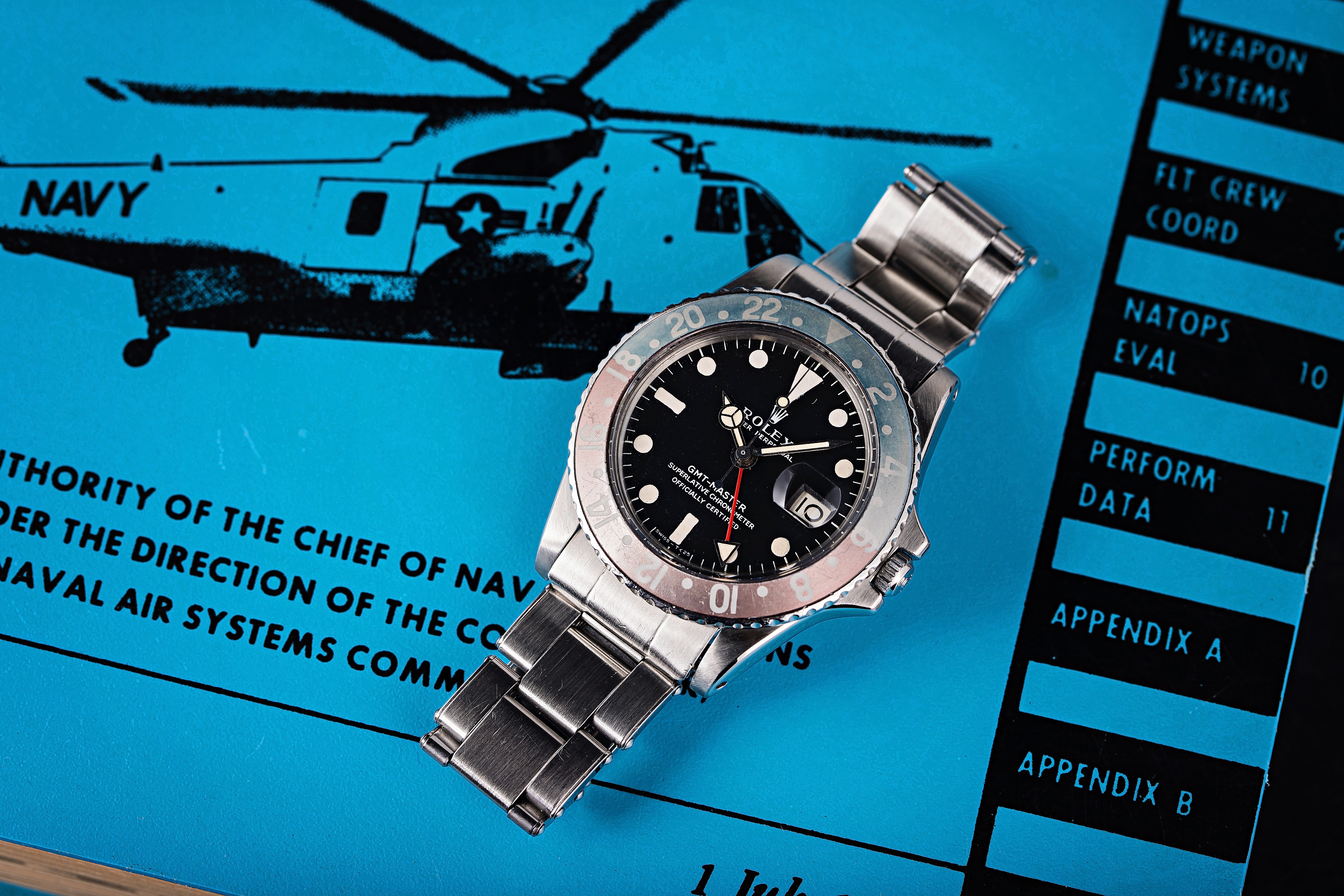 Purpose-built watches are often built for extreme conditions, but there’s only one watch with a story quite like the Rolex GMT-Master owned by U.S. Navy Captain Thomas Francis Finley Jr.: That watch adorned the helicopter pilot’s wrist as he flew rescue missions for the 1971 retrieval of Apollo 14 astronauts.
