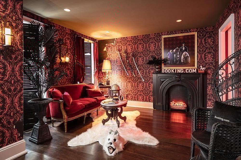 In honor of Halloween and the new The Addams Family movie, Booking.com is listing a replica of the fictional family’s famously creepy home, set up inside of a striking three bedroom 19th-century townhouse in Brooklyn.