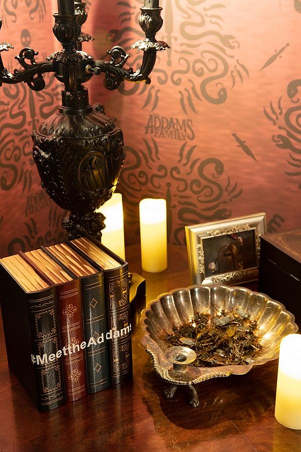 The stunning abode is decked out in all things “ooky” with bowls of cockroaches, vases of just rose stems, Morticia’s carnivorous plants, and Lurch’s famous “You Rang?” bell.