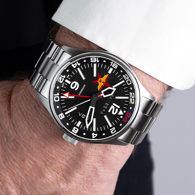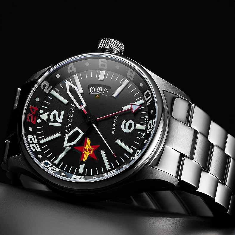 That’s according to Panzera, an independent Australian watchmaker founded in 2009 by longtime friends Roger Cooper and Andrew Herman. In a business model that differs from that of the better known brands listed above, Panzera aimes to keep prices down by selling directly to the consumer, using components sourced from Switzerland and Japan that are then hand-assembled in Sydney. The brand received an “unsolicited commission from pilots of the United States Air Force’s elite Aggressor Squadron”—a specialized unit that rigorously trains air crews by simulating enemy tactics, techniques and procedures—to create a special edition of its Flieger 45G featuring the squadron’s insignia.