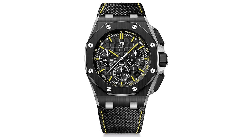 There’s also the introduction of the first-ever black ceramic case for the 42mm edition of the Royal Oak Offshore, complete with a matching bracelet and black dial for what Audemars Piguet calls a “contemporary monochrome look.”