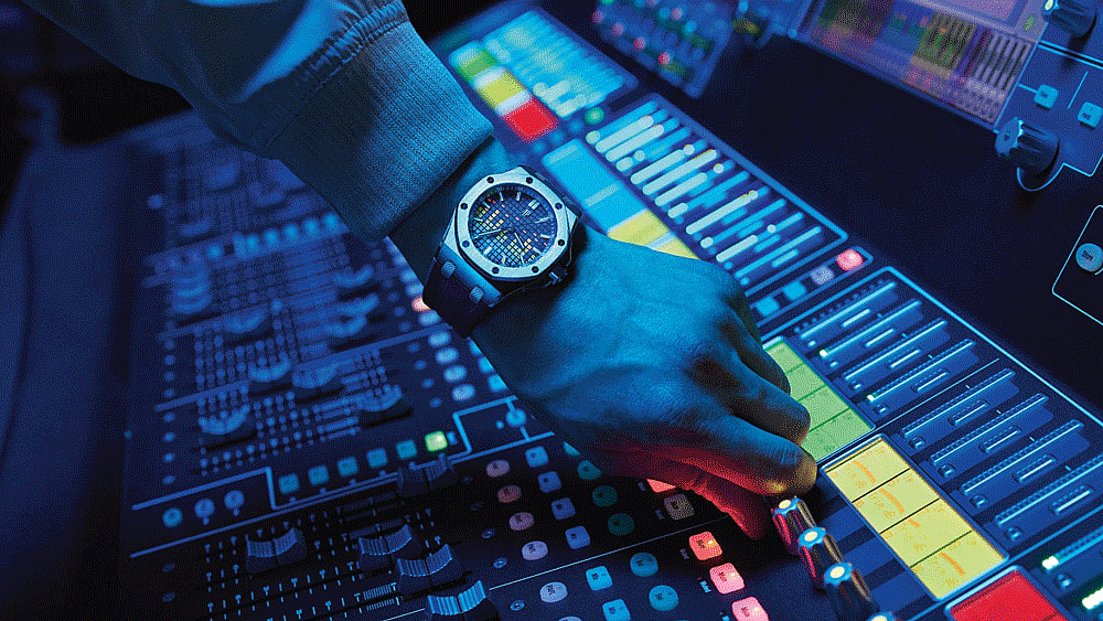 The effect on the surface is a rainbow-esque kaleidoscope, one any die-hard music fan — or hotshot producer and Audemars Piguet fan — can recognize almost instantly.