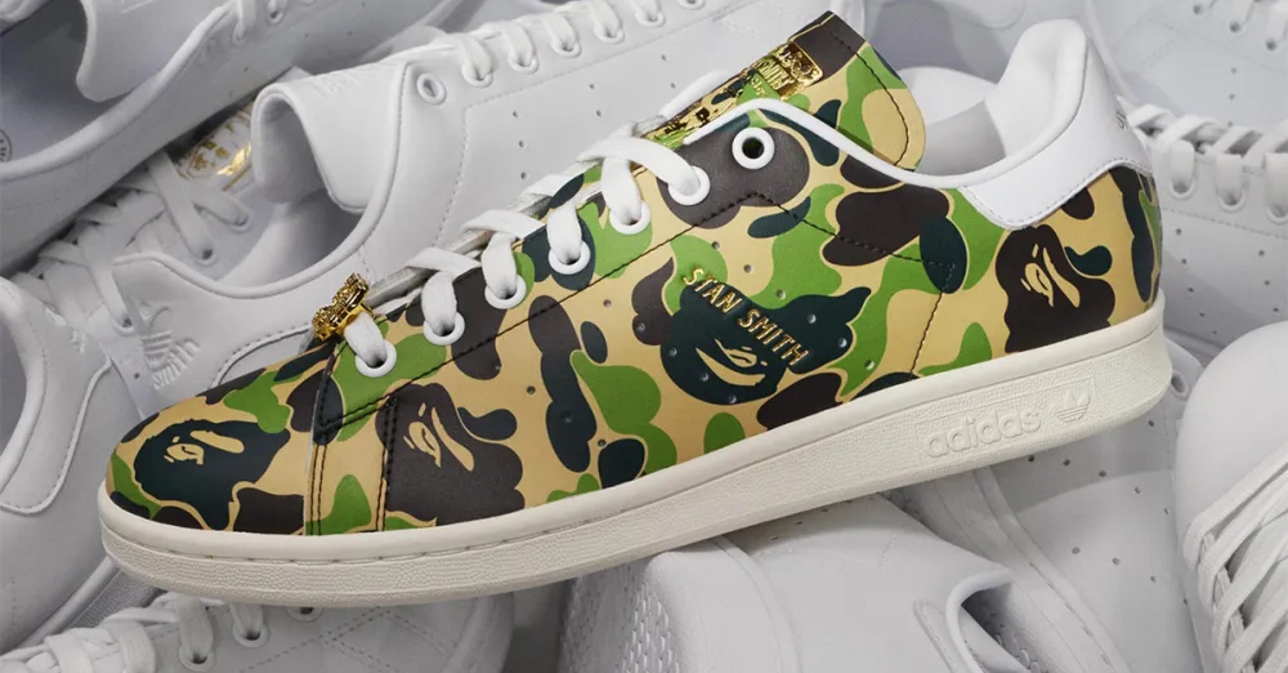 The Adidas Stan Smith x BAPE sneakers are an ideal meeting of the minds between a streetwear icon and a legend in the sportswear world, Adidas said, and a fitting nod to three decades of fashion excellence.