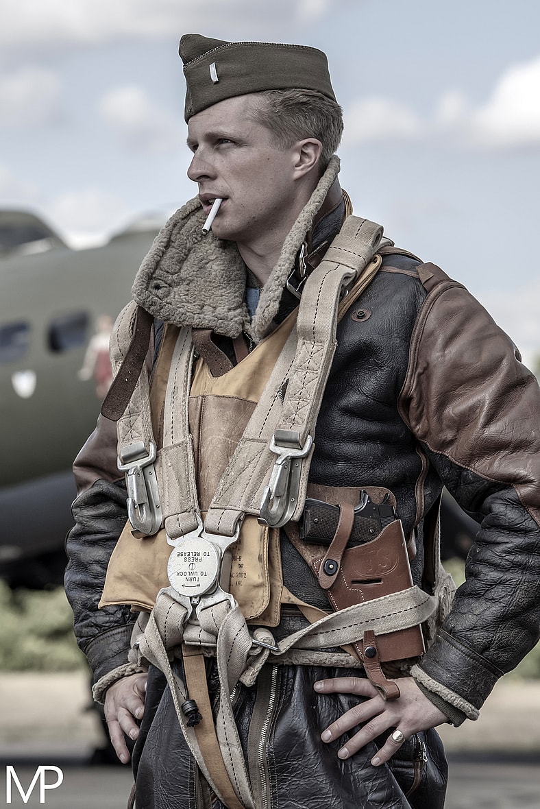 With a custom-made fabrication process and painstaking attention to detail, Eastman’s jackets soon surpassed anything turned out by the competition. “The product needed to look like an unissued original garment, basically,” Eastman explains. “This ethos was more and more refined as the years went by.” His laser-like focus on authentic quality quickly turned heads—and caught the attention of Hollywood costume designers. Eastman jackets graced the big screen in the 1998 war epic Pearl Harbor, along with Apple TV’s visually spectacular WWII aviation series Masters of the Air, which involved supplying hundreds of jackets plus supporting accessories like T-shirts and original wartime oxygen masks.