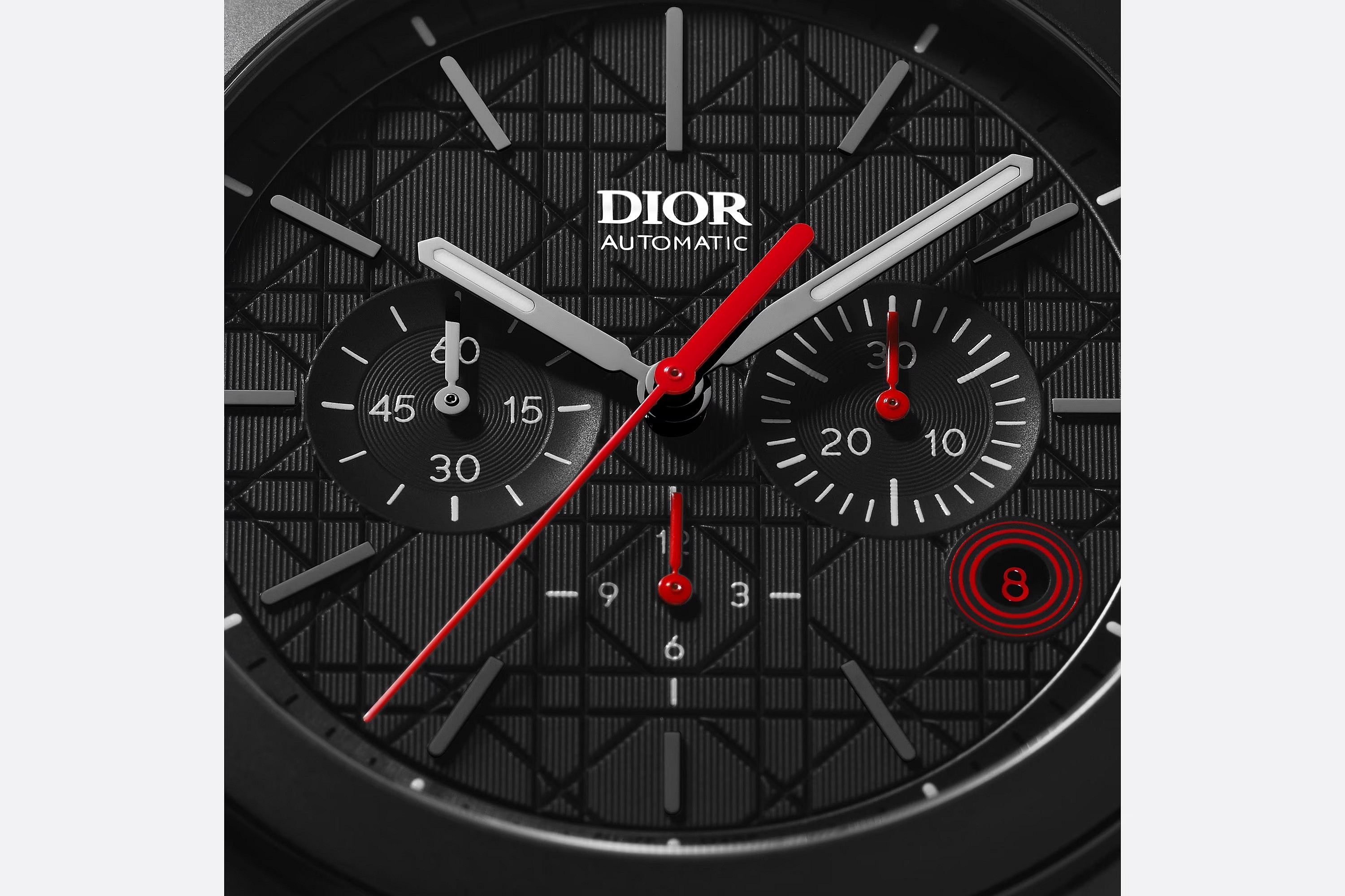 The Dior Chiffre Rouge Black Ultramatte Chronograph, so named for its red “chiffres,” or digits, in the date window, is back in a big way and in a new matte black stainless steel finish for maximum style and sex appeal.