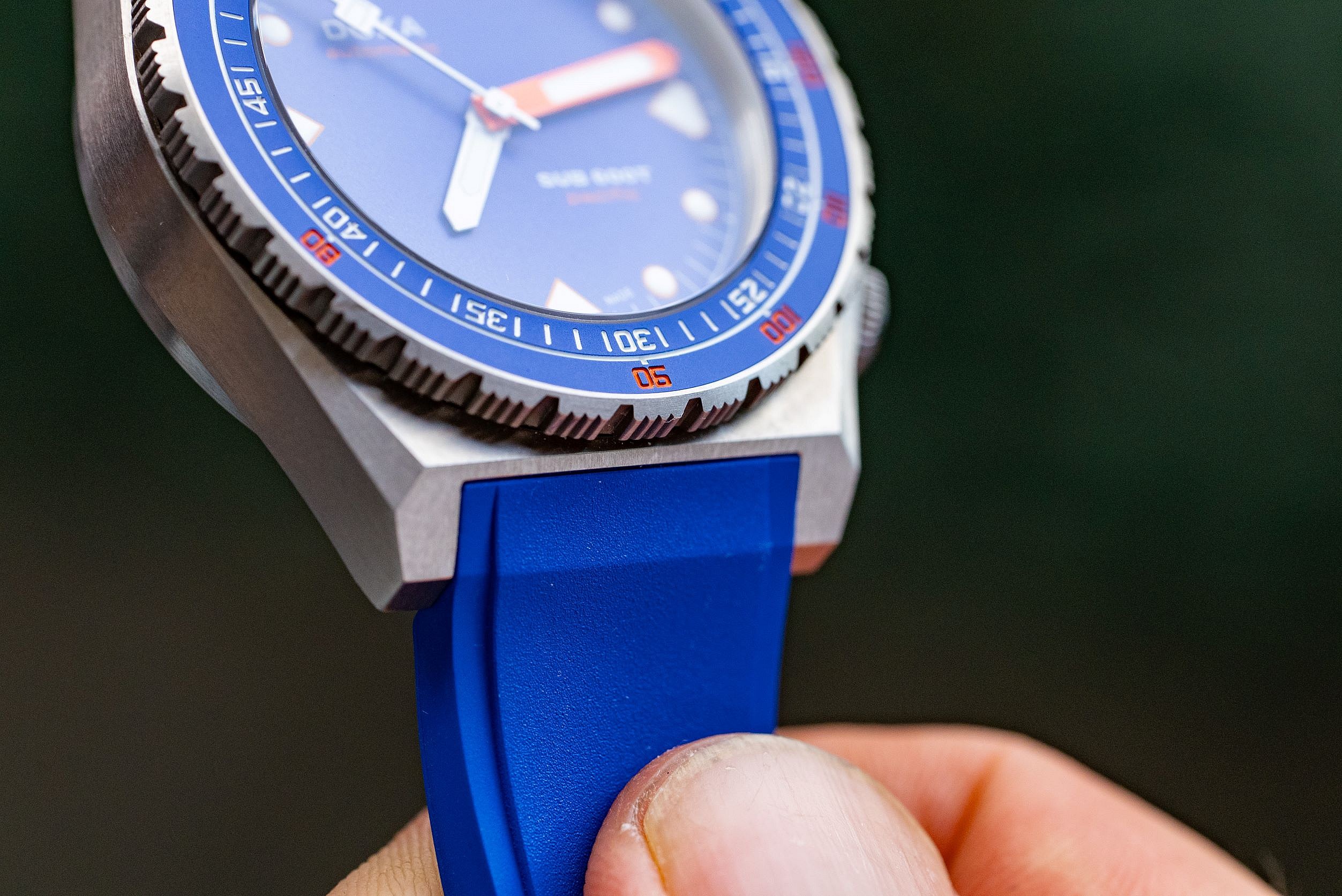 Two additional features distinguish the Pacific edition from the 80s version of the SUB 600T. A brilliant new ocean-blue hue inspired by the shimmering waters surrounding Australia has been applied to the bezel, dial and rubber strap. This new limited-edition model also introduces a new type of clasp. It resembles a standard pin buckle but works like a folding buckle to permit quick adjustments.