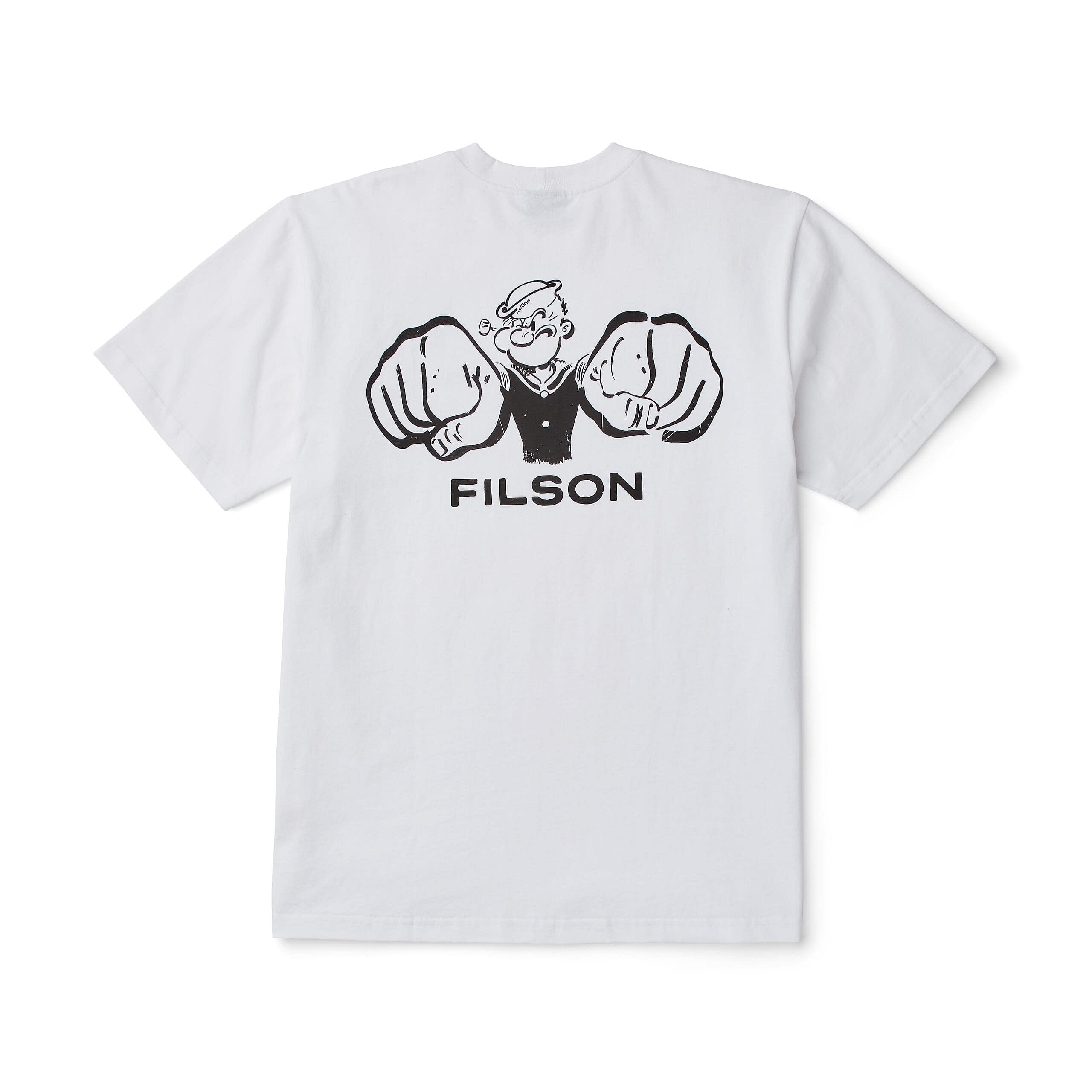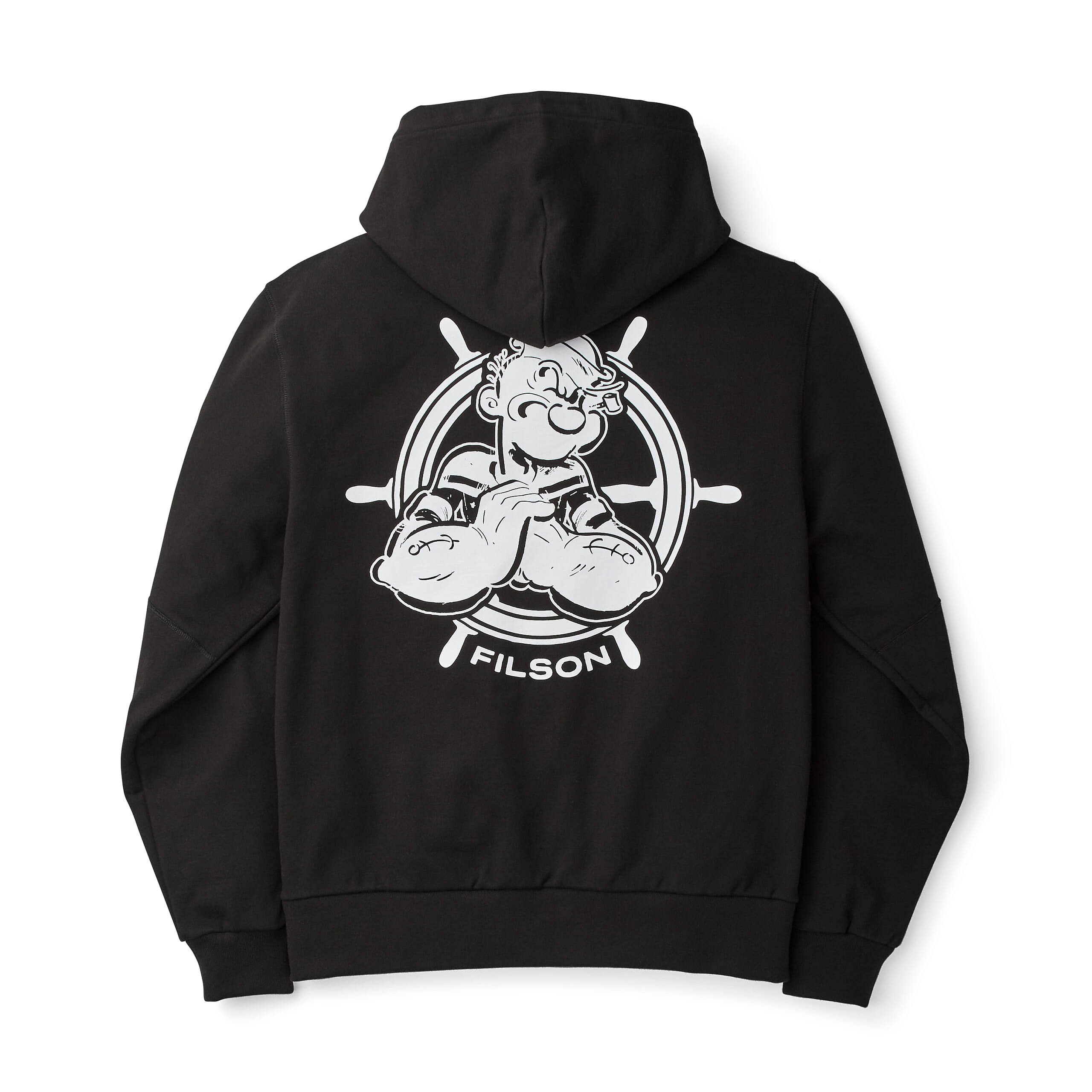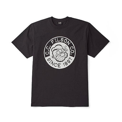 Rugged outdoor outfitter Filson is launching a limited edition capsule collaboration featuring Popeye, the iconic cartoon “sailor man” known for his love of spinach, ever-present pipe and freakishly jacked forearms. The American-made collab includes heavy duty pullover hoodies and graphic t-shirts, a stoneware coffee mug and a sticker series celebrating both Filson’s history in Seattle’s maritime industry and the Popeye character’s 90th birthday.