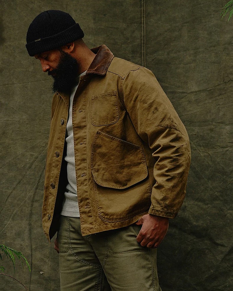 Filson’s trademark thick-knit watch caps and durable waxed bags are joined by textured corduroy shirting, dependable work pants given Filson’s oil finish cloth treatment, and fresh colors of the trucker jacket-inspired Short Lined Cruiser and the work jacket design of the Tin Cloth Primaloft Jacket.