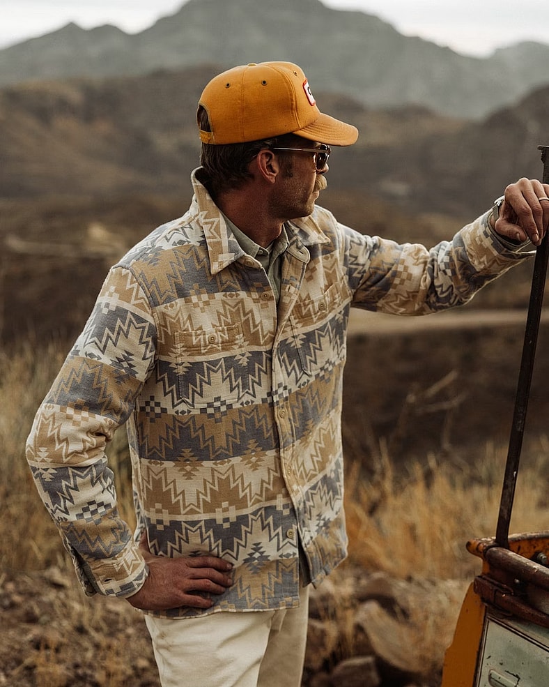 The Flint and Tinder Spring 2025 Collection also features some unexpected versions of the familiar, like the jacquard weave and dusty desert inspiration of the Southwestern Flannel Shirt. The dusty-hued shirt is almost Marfa personified, a “vintage-inspired Western shirt crafted from a 100% cotton jacquard fabric” that should prove more than suitable for breezy spring mornings on the patio and nights around the bonfire.