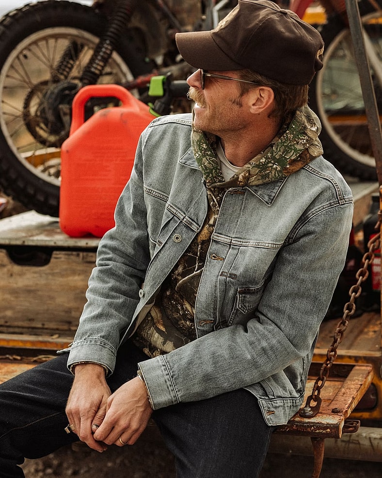The retailer made sure to get each and every retro-tinged detail correct. The Type II Trucker from Flint and Tinder “pays tribute to the original with bar tack-reinforced dual-pleats on the front placket and 2 buttoned chest pockets for your everyday essentials,” and Flint and Tinder’s sturdy customized hardware is a major selling point for the affordable (sub-$200) light wash jacket.