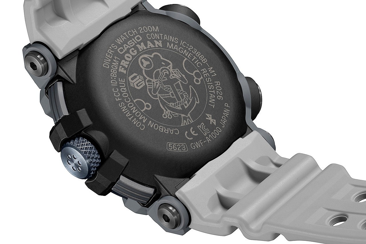 Additional design touches include a cartoon Frogman etched into the case back. G-Shock has gone bold with the watch’s hands and indices as well and they glow with Neobrite luminescence and are protected by a sapphire crystal for maximum underwater readability.