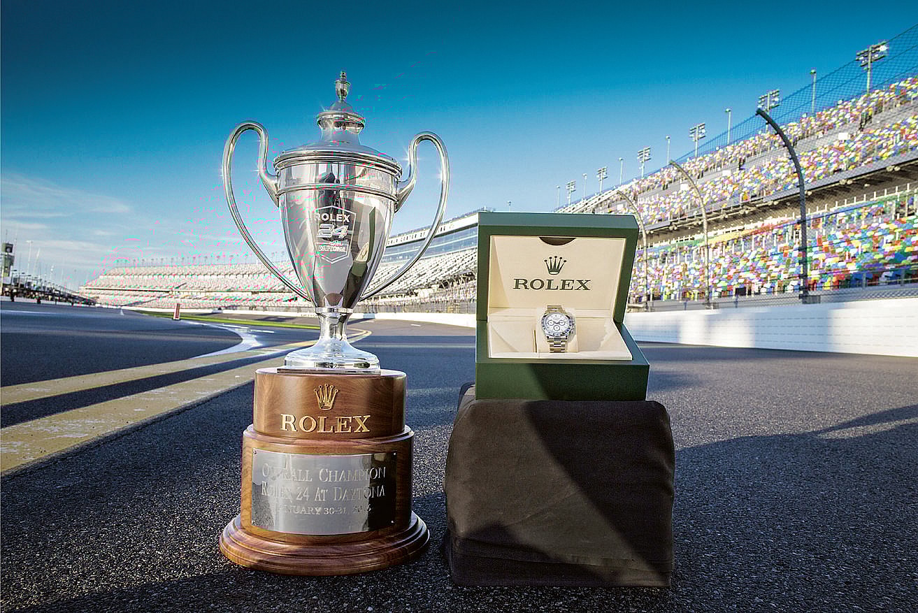 These days Rolex awards watches in a range of sporting activities and events. Drive the winning car in the legendary Rolex 24 at Daytona race in Florida, held since 1966 and one leg of the “triple crown” of endurance racing, and you’ll receive the equally iconic timepiece named for it: a Rolex Daytona Cosmograph, the most enviable of all sports watches, engraved with the year and the famed Rolex 24 at Daytona logo.
